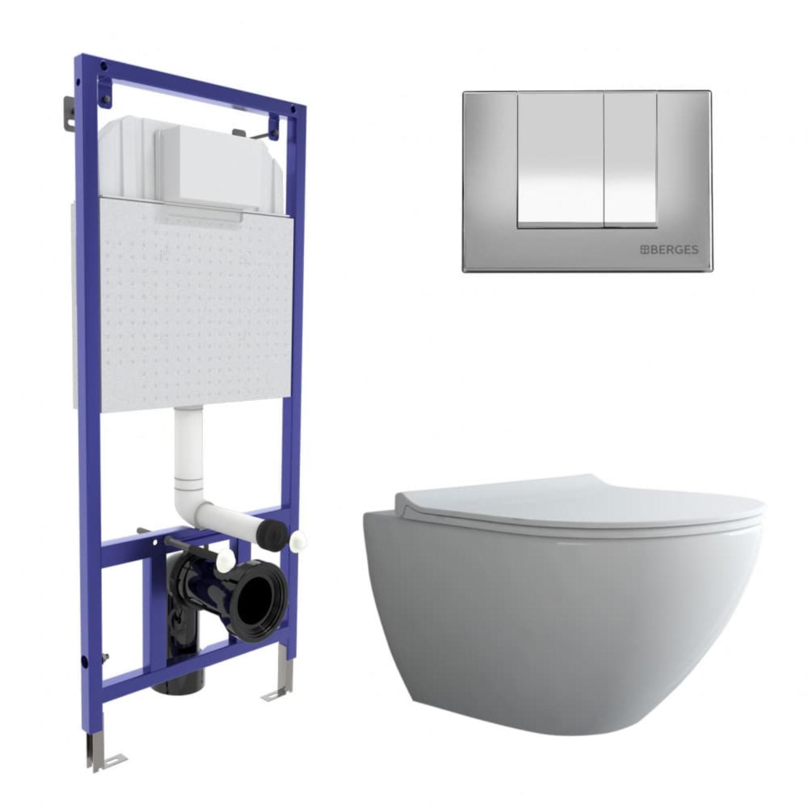 Комплект инсталляции Berges NOVUM 043247, унитаз, клавиша, сиденье дюропласт, белый
