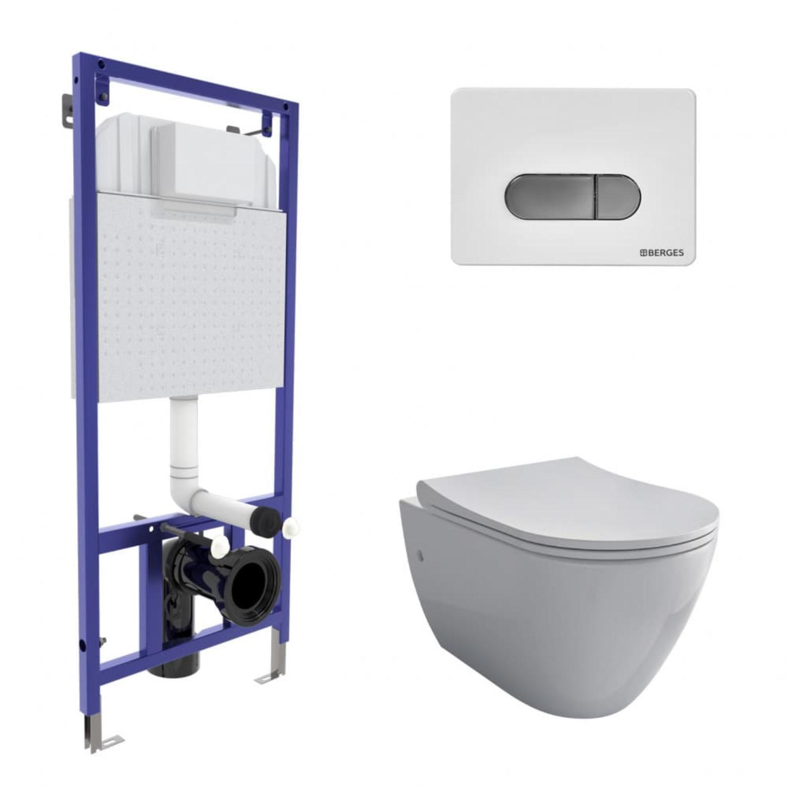Комплект инсталляции Berges NOVUM 043214, унитаз, клавиша, сиденье дюропласт, белый