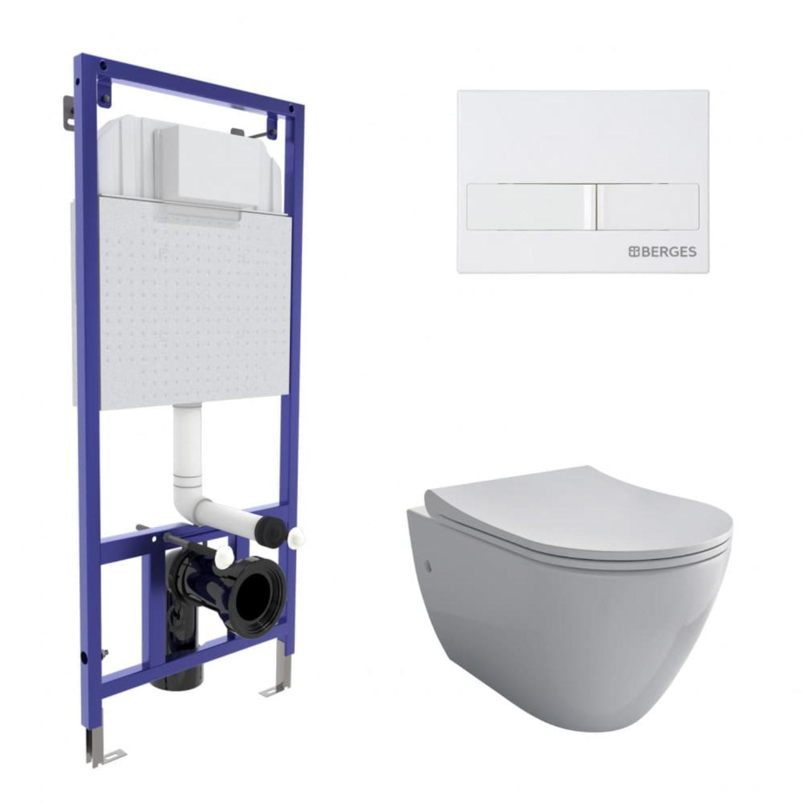 Комплект инсталляции Berges NOVUM 043266, унитаз, клавиша, сиденье дюропласт, белый