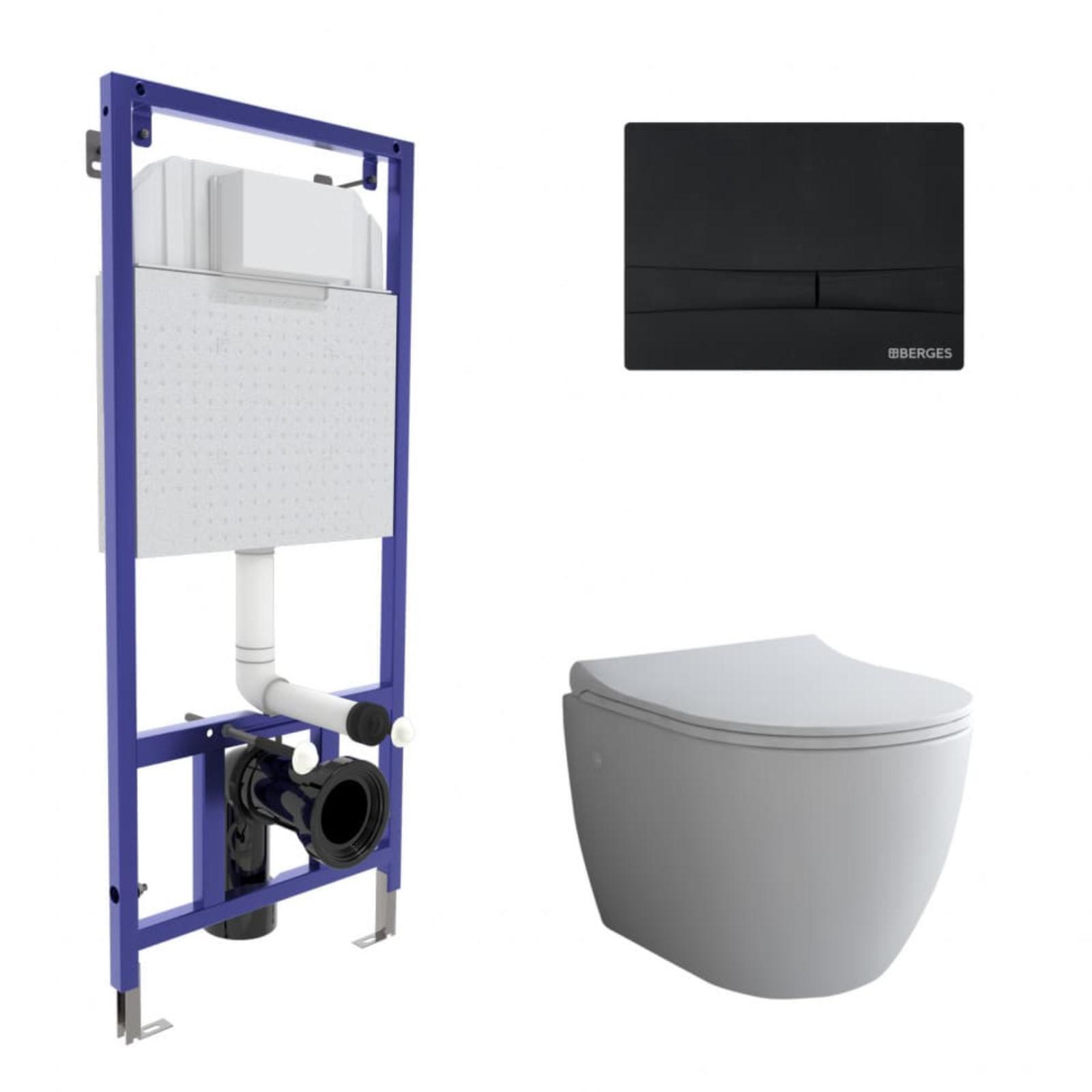 Комплект инсталляции Berges NOVUM 043273, унитаз, клавиша, сиденье дюропласт, белый