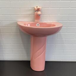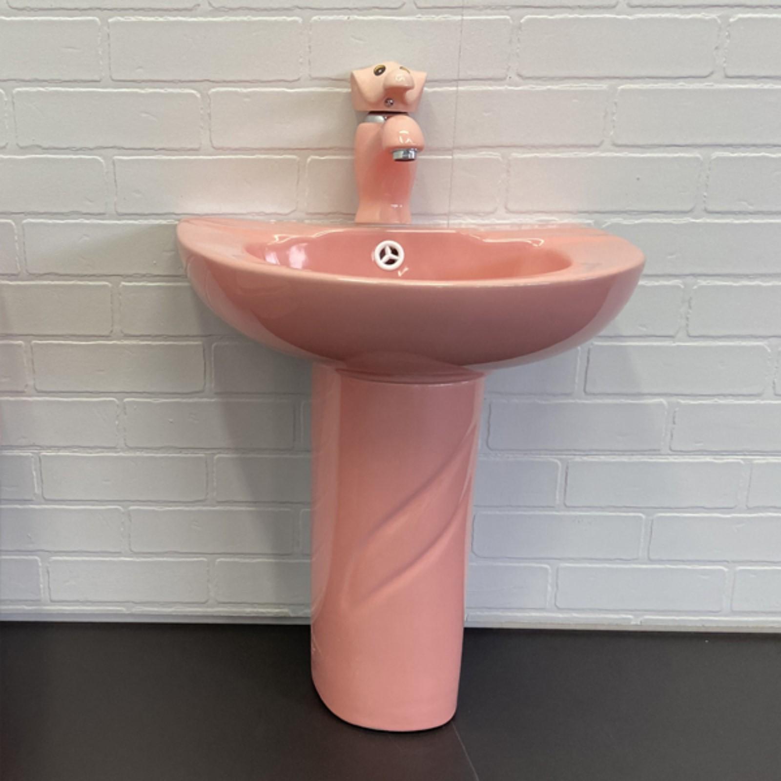 Раковина детская Comforty 0991P, донный клапан DK-02P, пьедестал P0991P, смеситель 01P, розовая