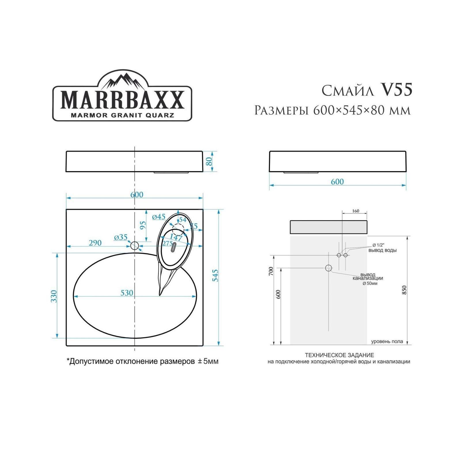Раковина MARRBAXX Смайл V55D1, на стиральную машину, 595х550х110 мм, сифон, кронштейны
