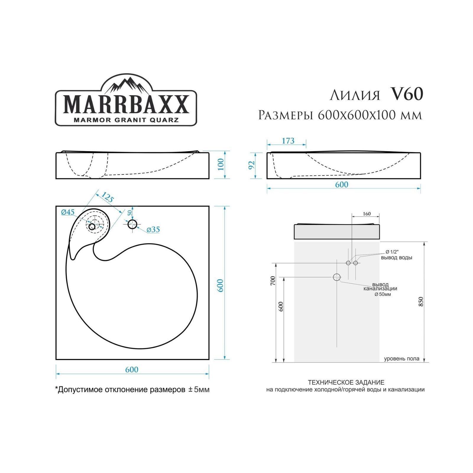 Раковина MARRBAXX Лилия V60D1, на стиральную машину, 595х595х110 мм, сифон, кронштейны