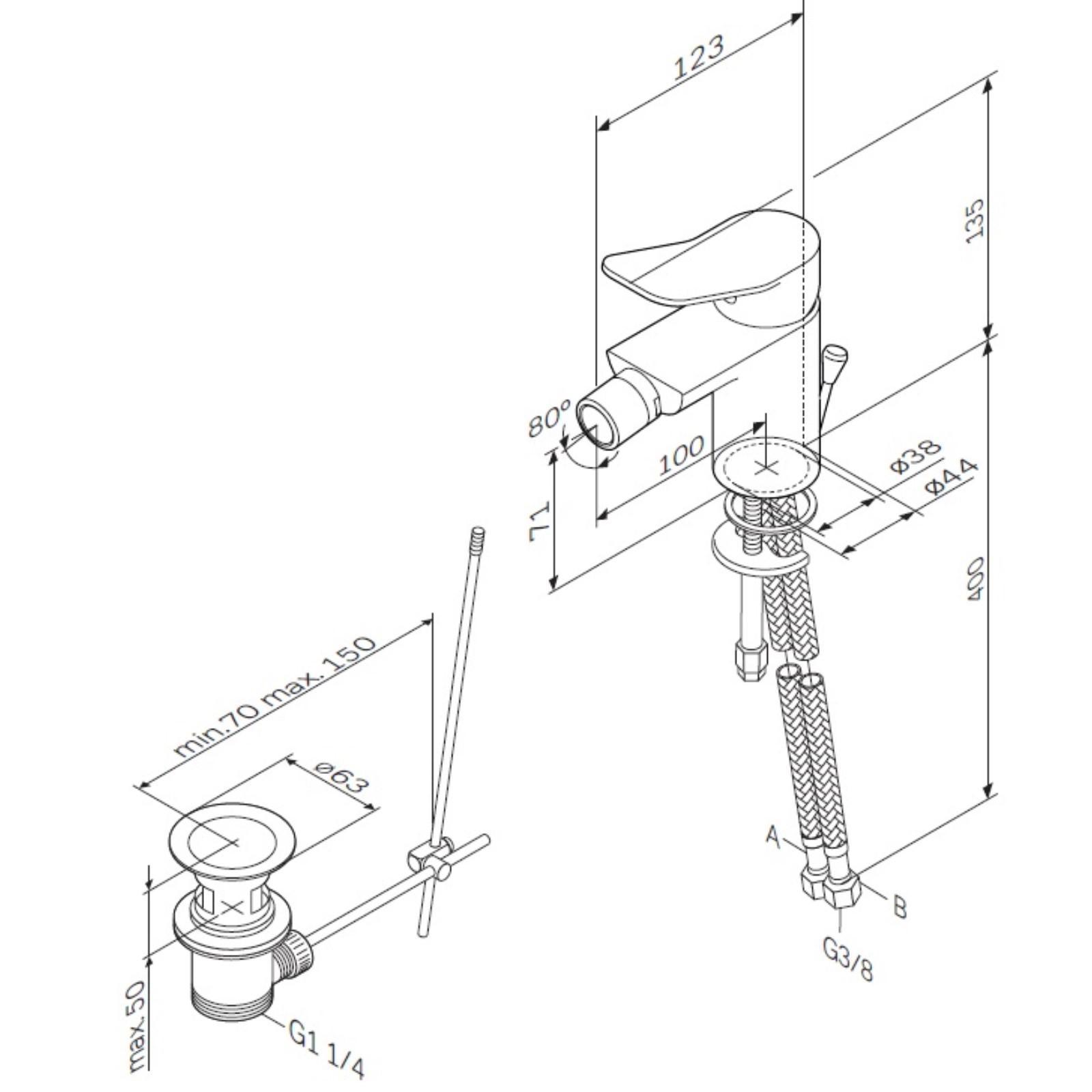 Смеситель для биде AM.PM X-Joy F85A83100, однорычажный, с донным клапаном, хром