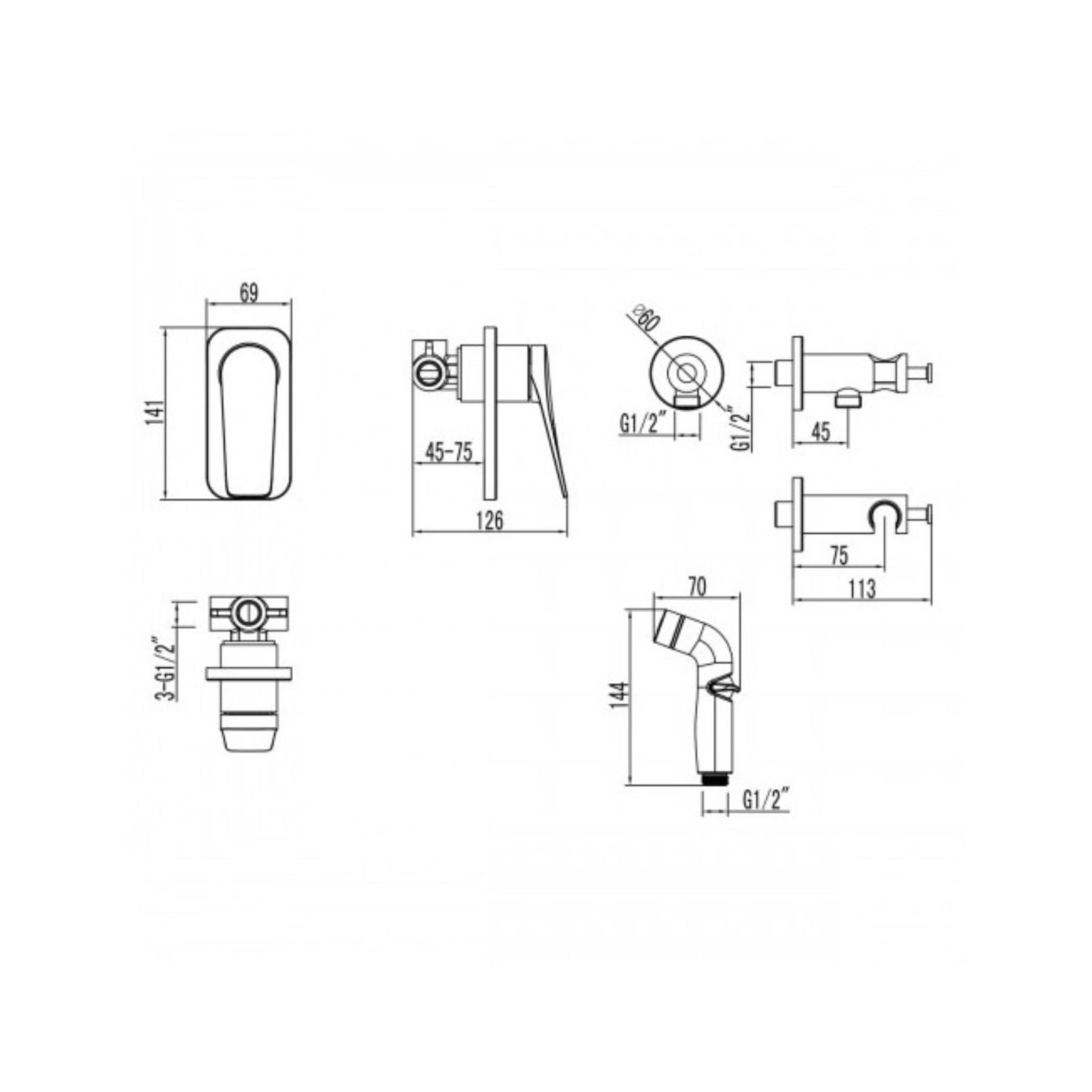 Смеситель для биде Lemark Bronx LM3719GM, однорычажный, с гигиенической лейкой, графит