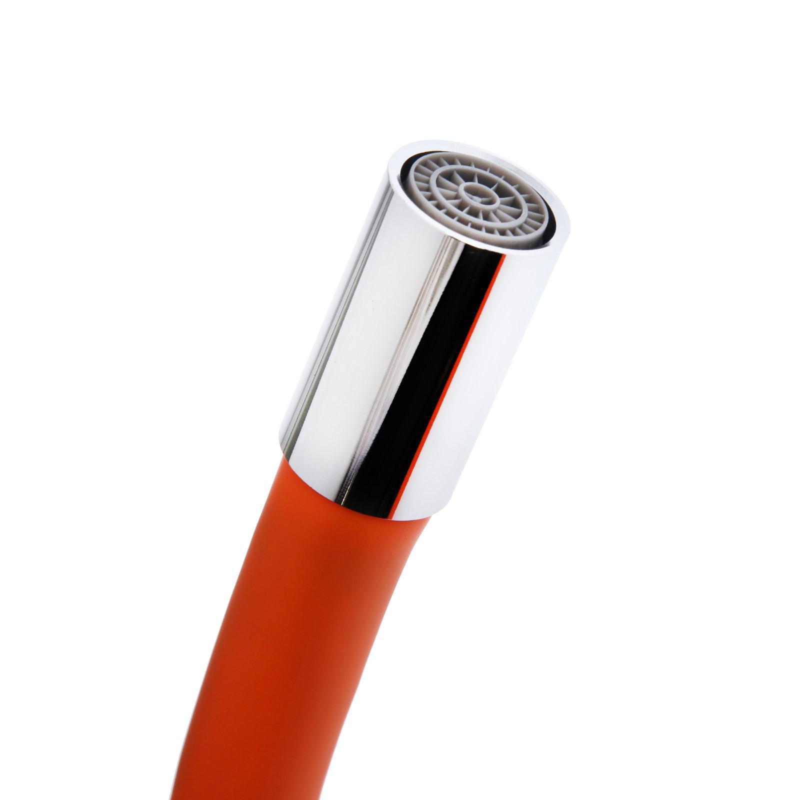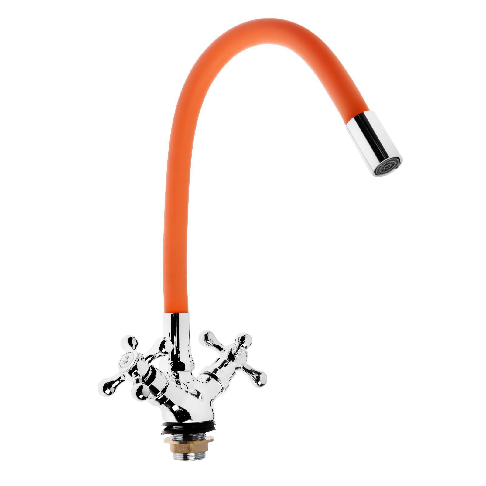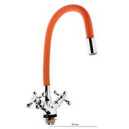 Cмеситель для кухни ZEIN 2107, двухвентильный, силиконовый излив, силумин, оранжевый/хром