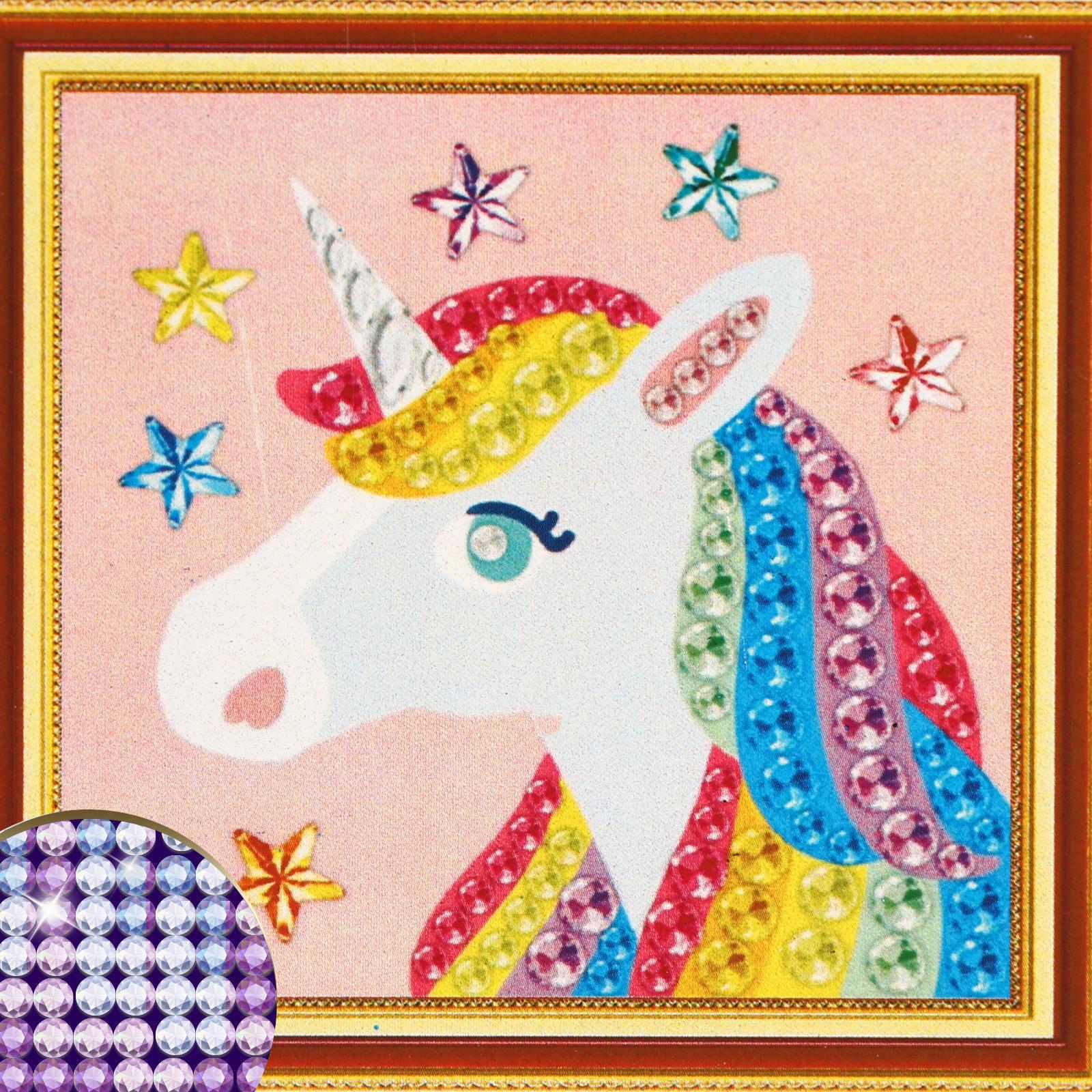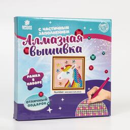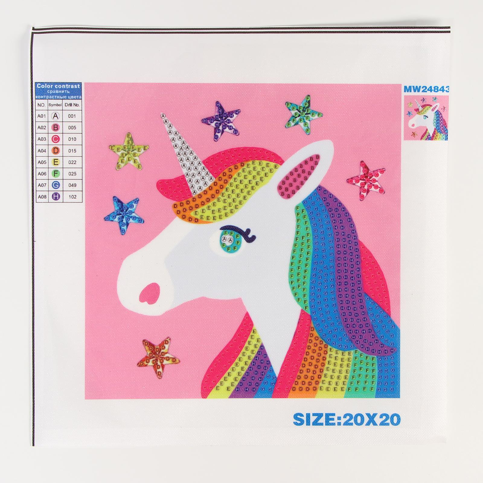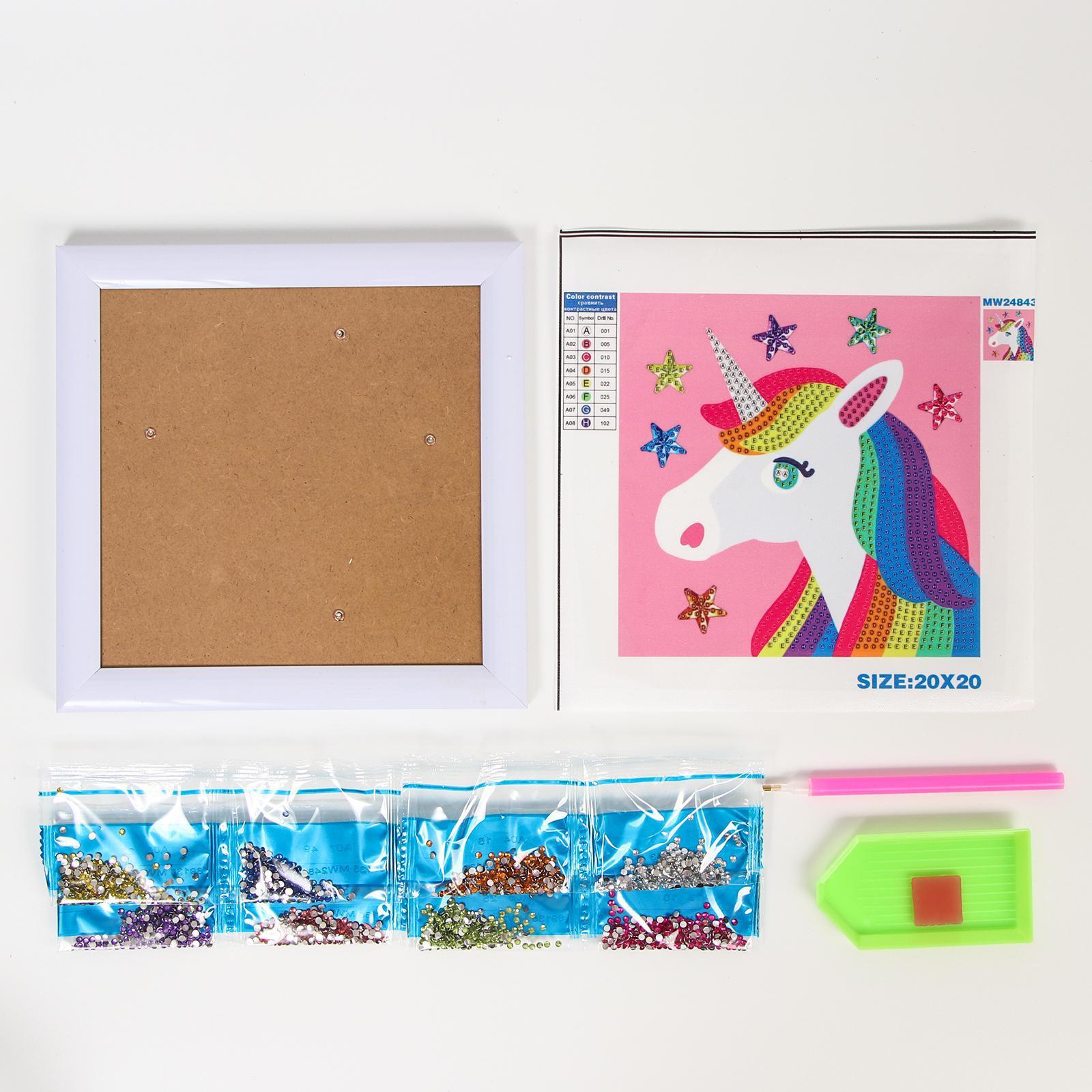 Алмазная мозаика с частичным заполнением «Радужный единорог» 20×20 см, с рамкой на подставке