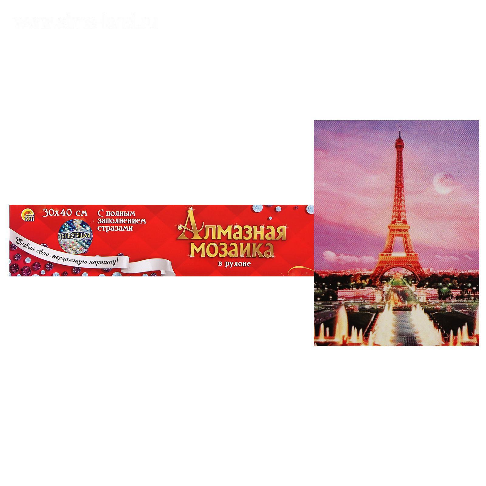 Алмазная мозаика классическая 30х40 см, без подрамника, с полным заполнением, 29 цветов «Вечерний Париж»