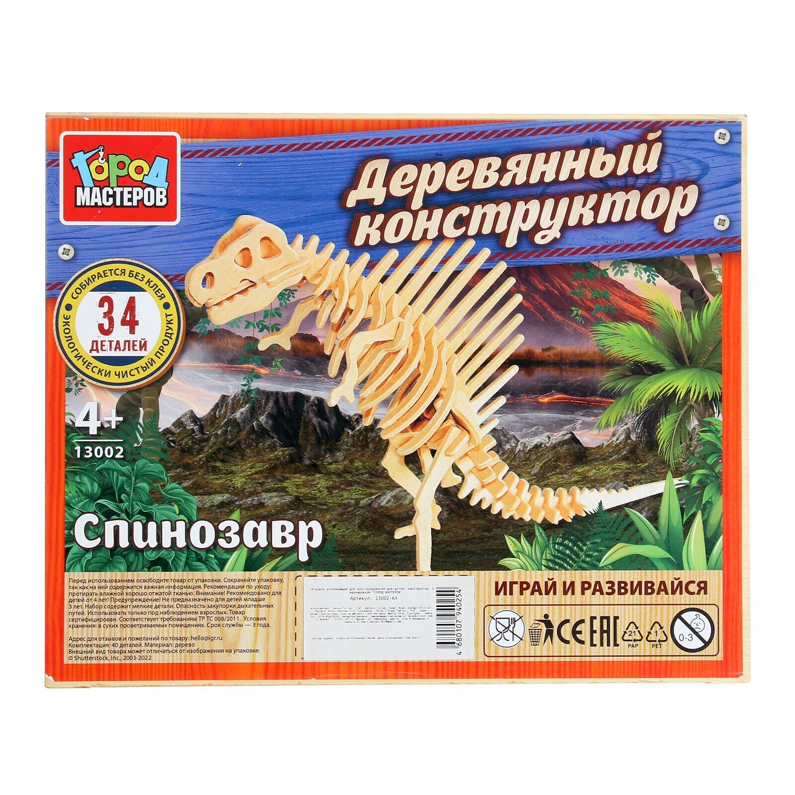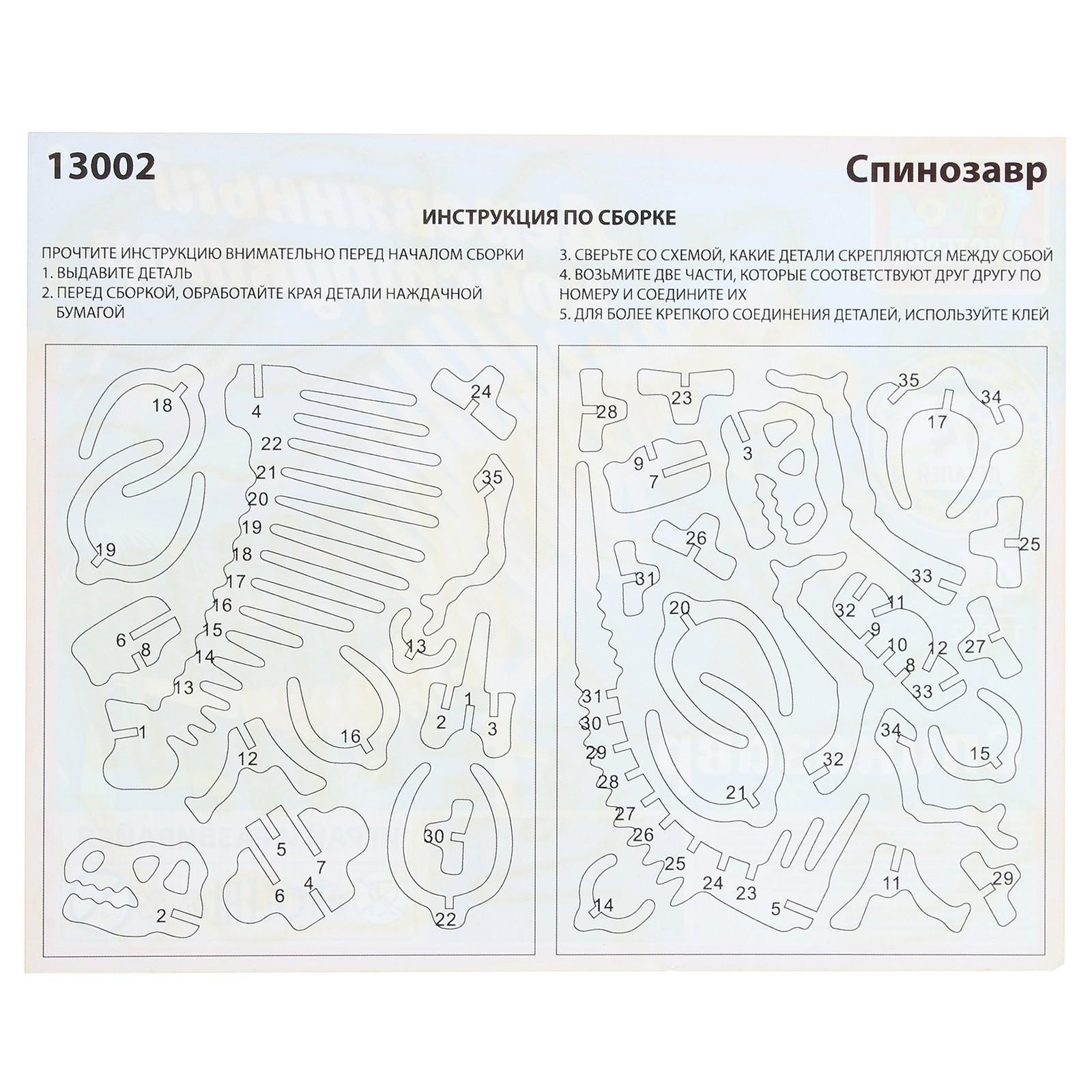 Конструктор деревянный «Спинозавр», 36 деталей