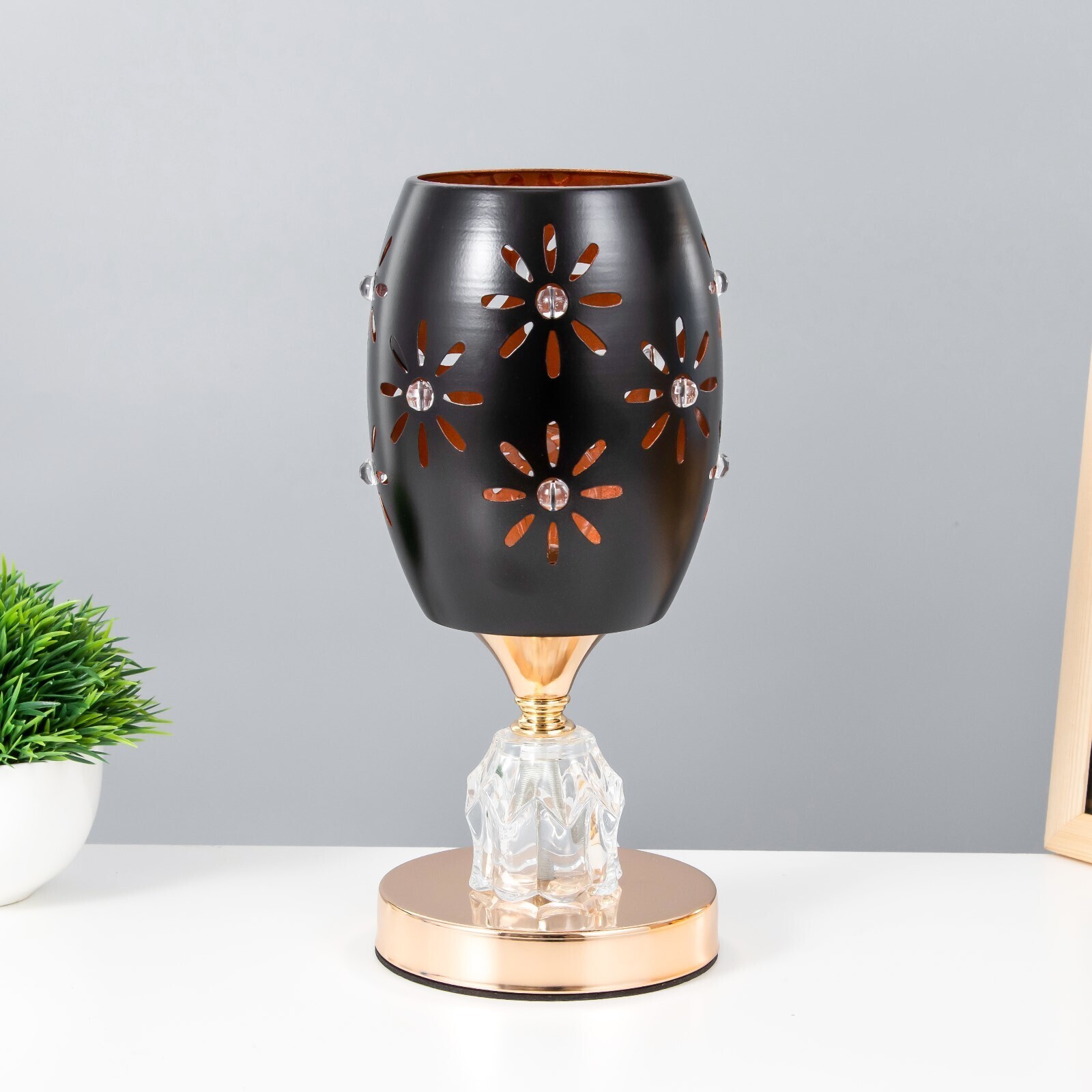 Настольная лампа "Цветы" E27 40Вт черно-золотой 12х12х24 см