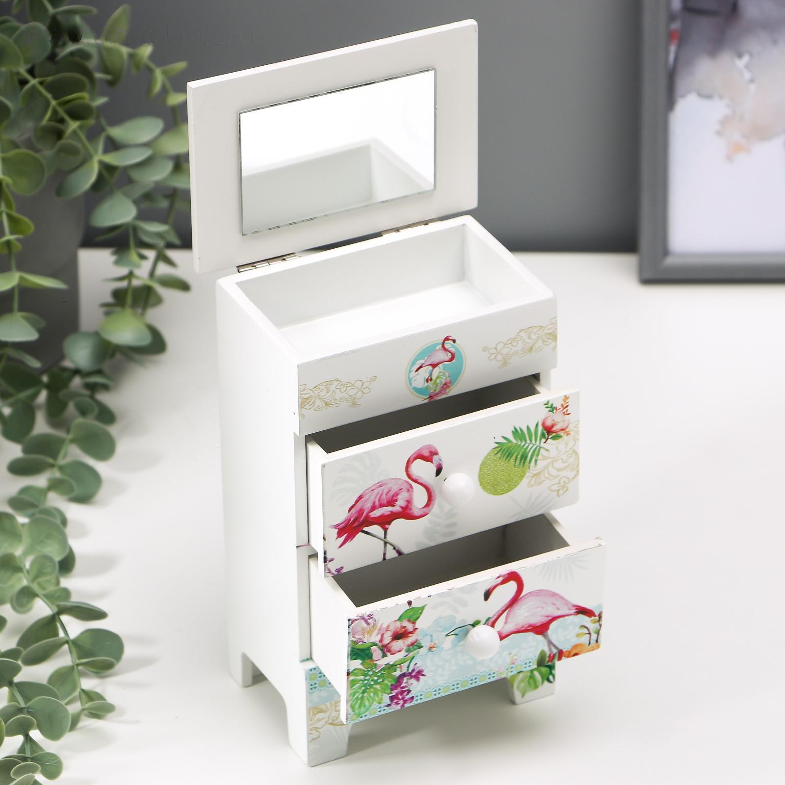 Шкатулка дерево 3 ящика "Фламинго" 18х11,5х7,5 см