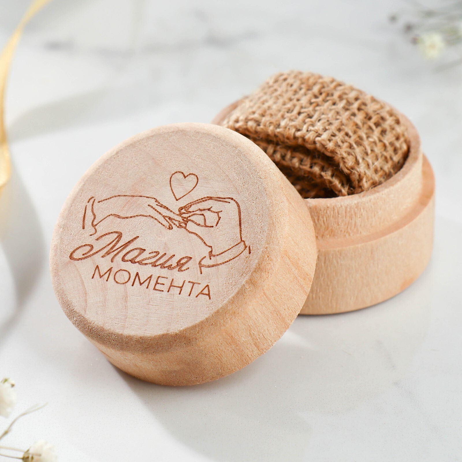 Шкатулка под парные кольца - это лучший подарок на свадьбу молодоженам. Свадебный футляр из дерева с крышкой подойдет под набор колец разной ширины и размера. Подставка для украшений вмещает широкое и тонкое, крупные и маленькие колечки из золота, с камнями и без. Коробка ручной работы с гравировкой подойдет для праздника дня святого валентина, на годовщину и для помолвки под золотые ювелирные изделия и бижутерию, а также под помолвочное кольцо. Подарочный кейс для драгоценностей в оригинальном дизайне приятно держать в руках. Это коробочка для кольца, которая дарит приятные воспоминания. Изящный органайзер для украшений дополнит свадебные фото и украсит церемонию бракосочетания или венчания.
