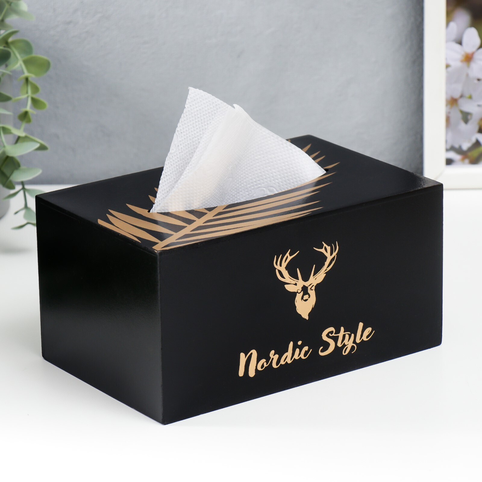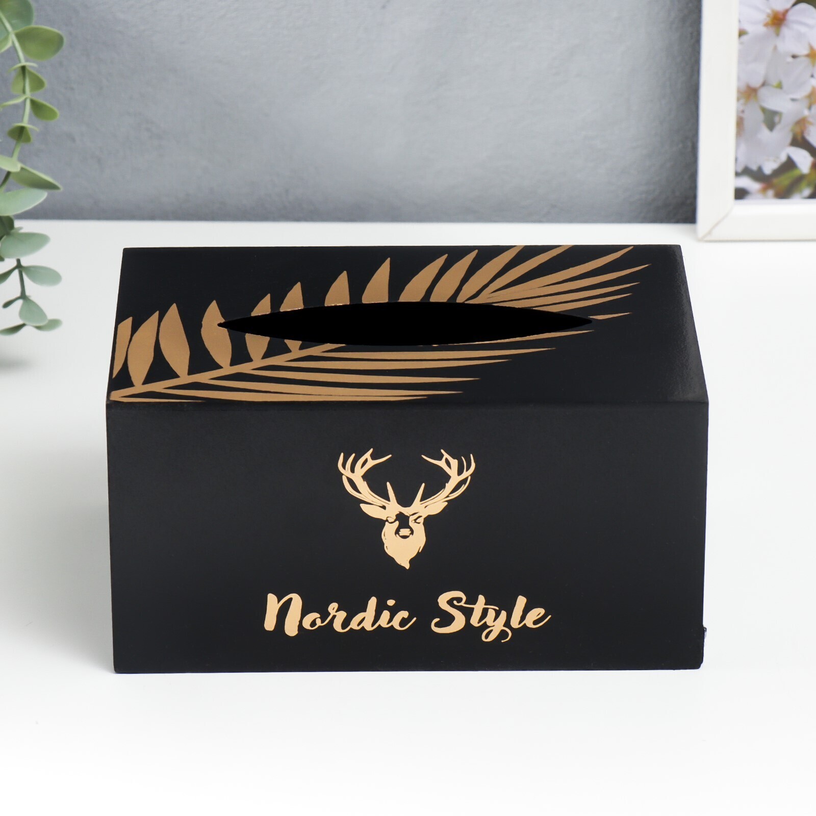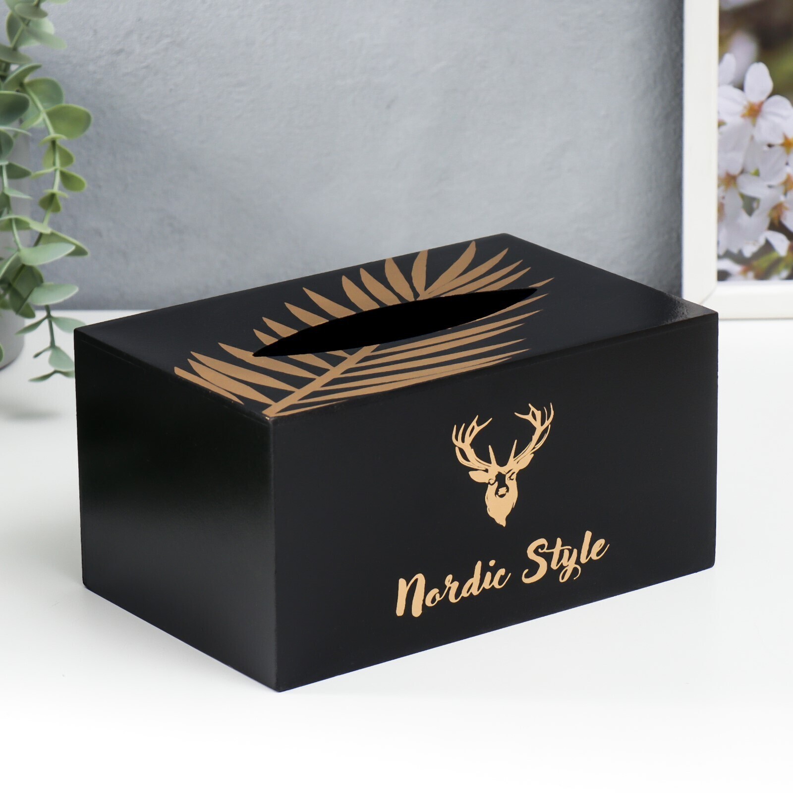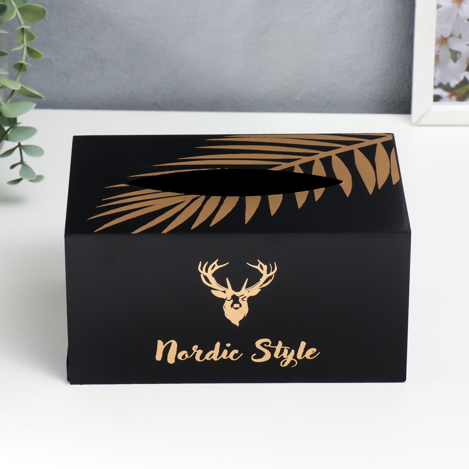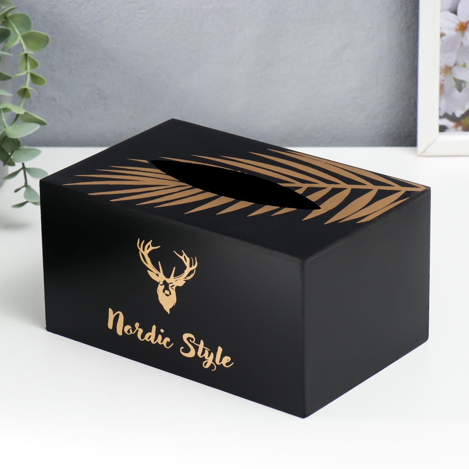 Шкатулка МДФ для салфеток "Золотой олень" чёрная 10х13х20 см