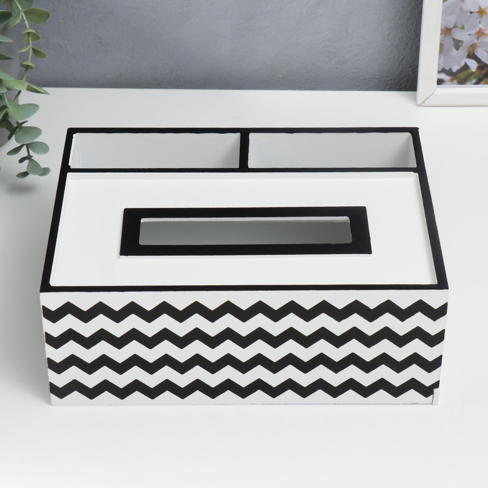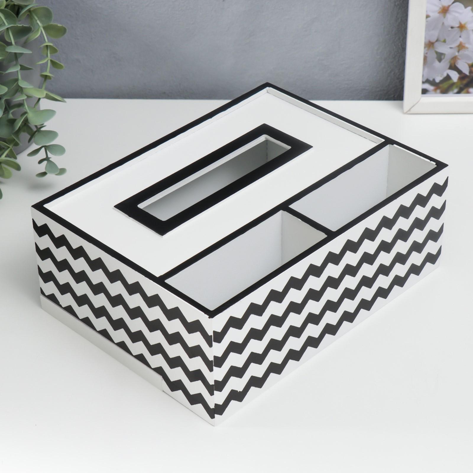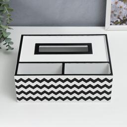 Шкатулка МДФ для салфеток с подставкой "Зигзаг. Геометрия" бело-чёрная 9х18х24 см