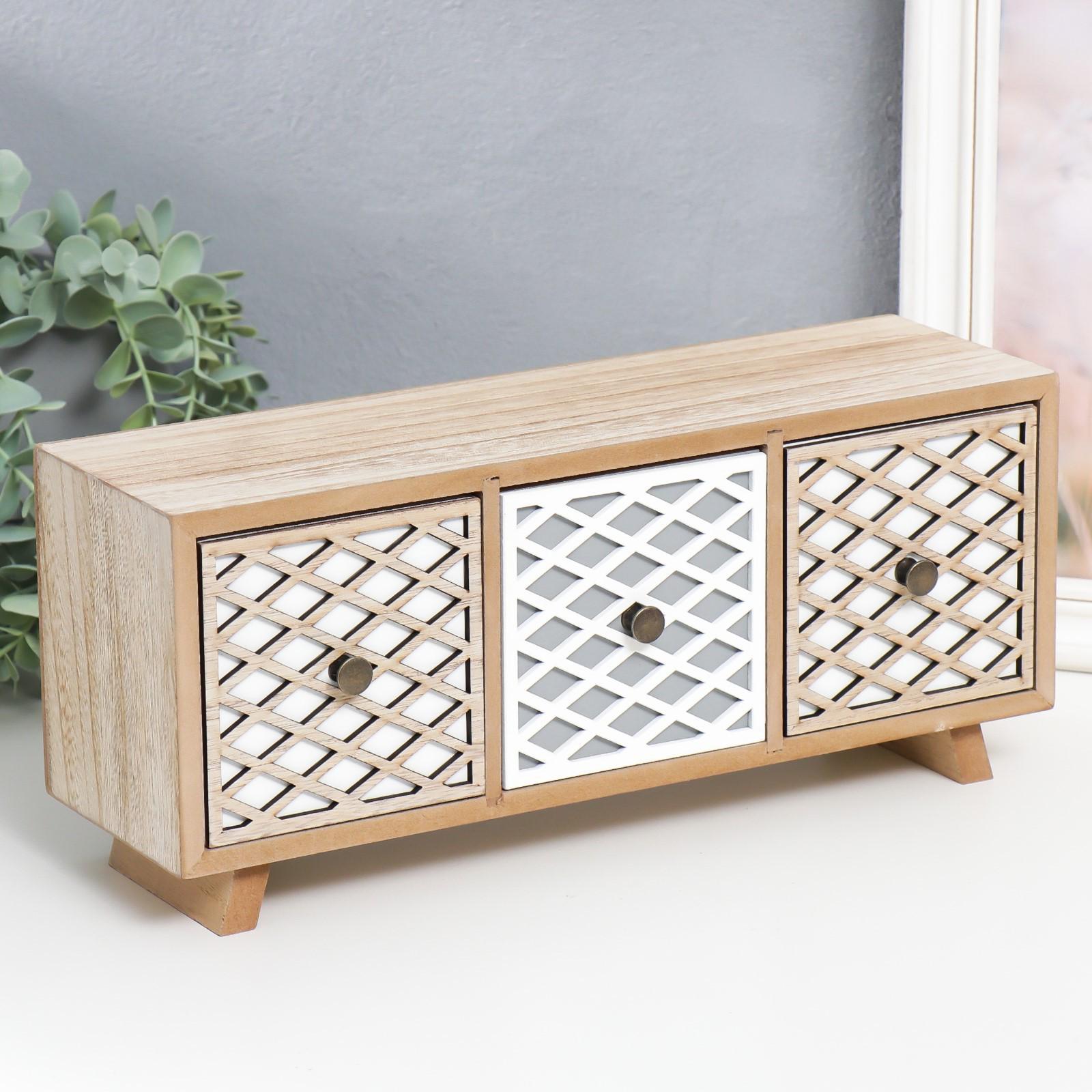 Шкатулка дерево комод 3 ящика "Сетка" бежево-белая 10х33х14 см