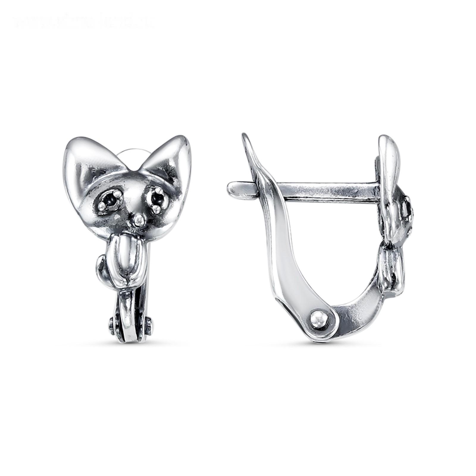 Серьги детские "Котёнок", посеребрение с оксидированием