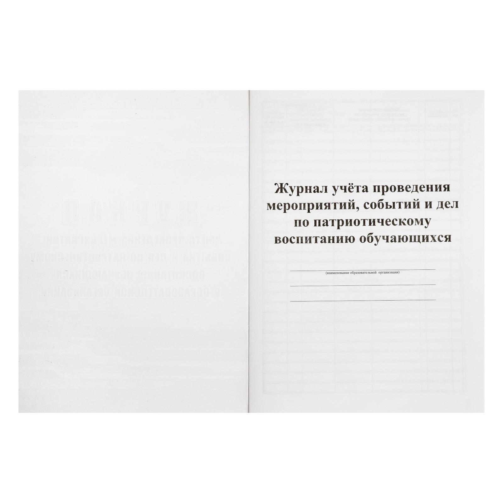 Журнал учёта проведения мероприятий, событий и дел по патриот. воспитанию обуч. в ОО А4 32ст