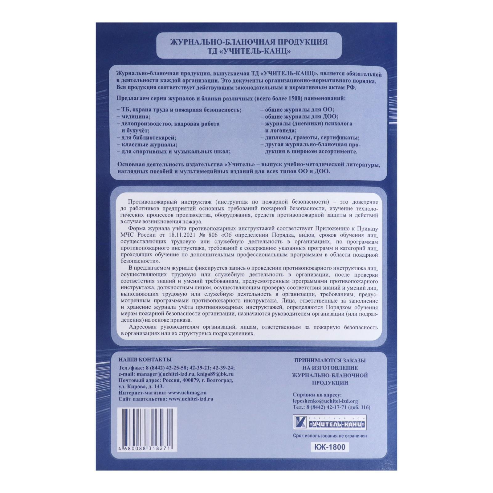 Журнал учета противопожарных инструктажей А4 64стр, блок писчая 60г/м2, обл. офсет 160г/м2