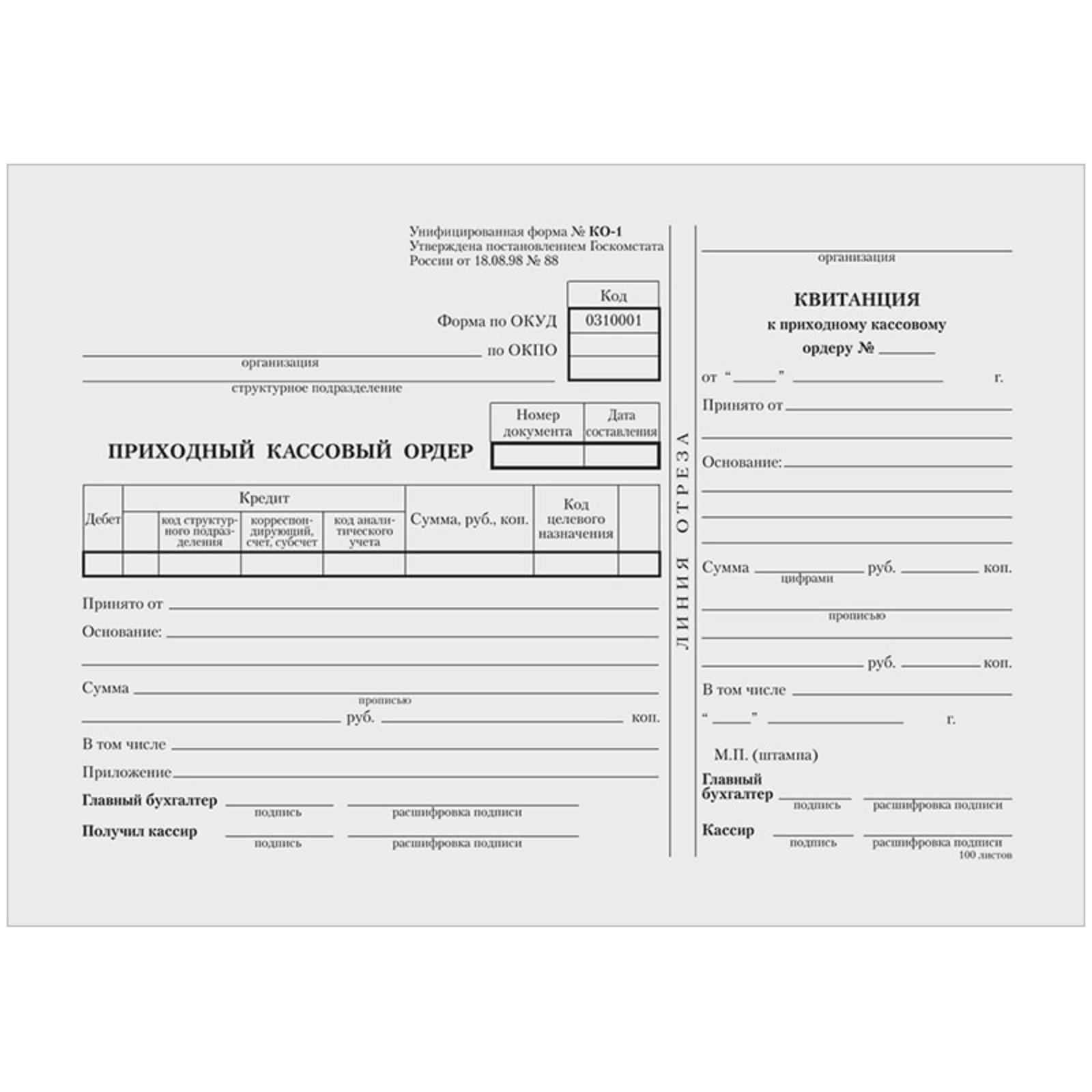 Бланк "Приходный кассовый ордер" Calligrata, А5 (форма КО-1), газетка, 100 экземпляров, в термоусадочной пленке