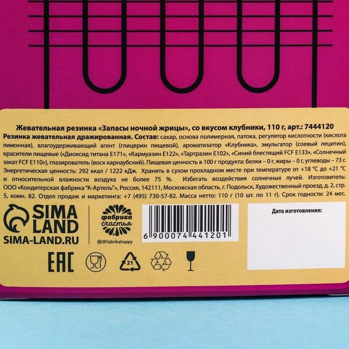 Жевательная резинка "Запасы ночной жрицы", вкус: клубника, 110 г.