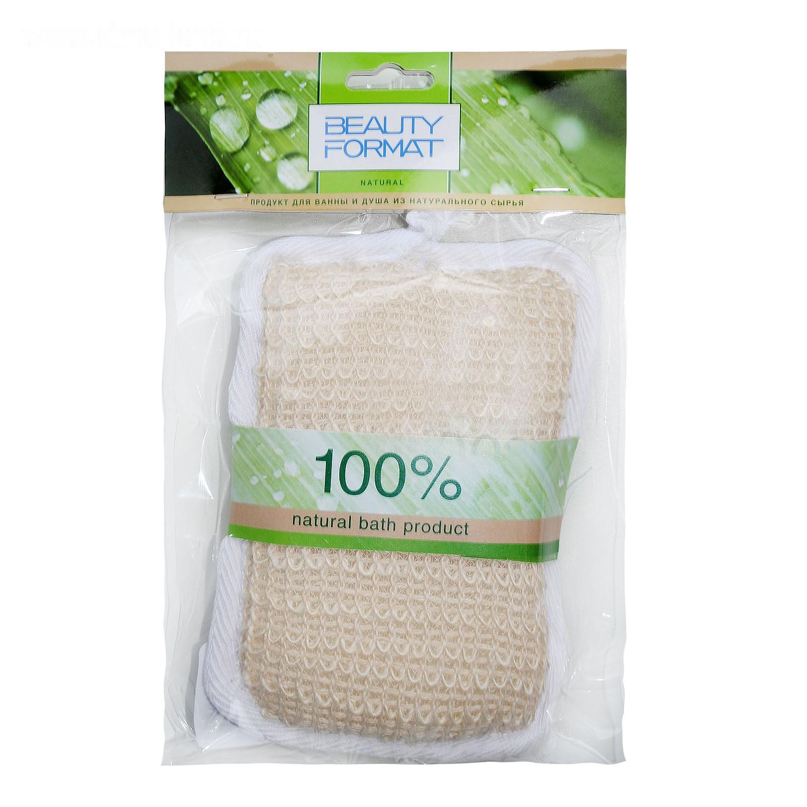 Мочалка Beauty Format натуральная брус, крапива + хлопок