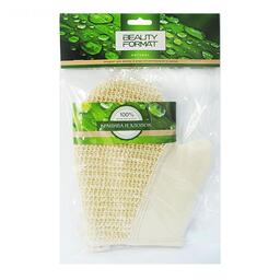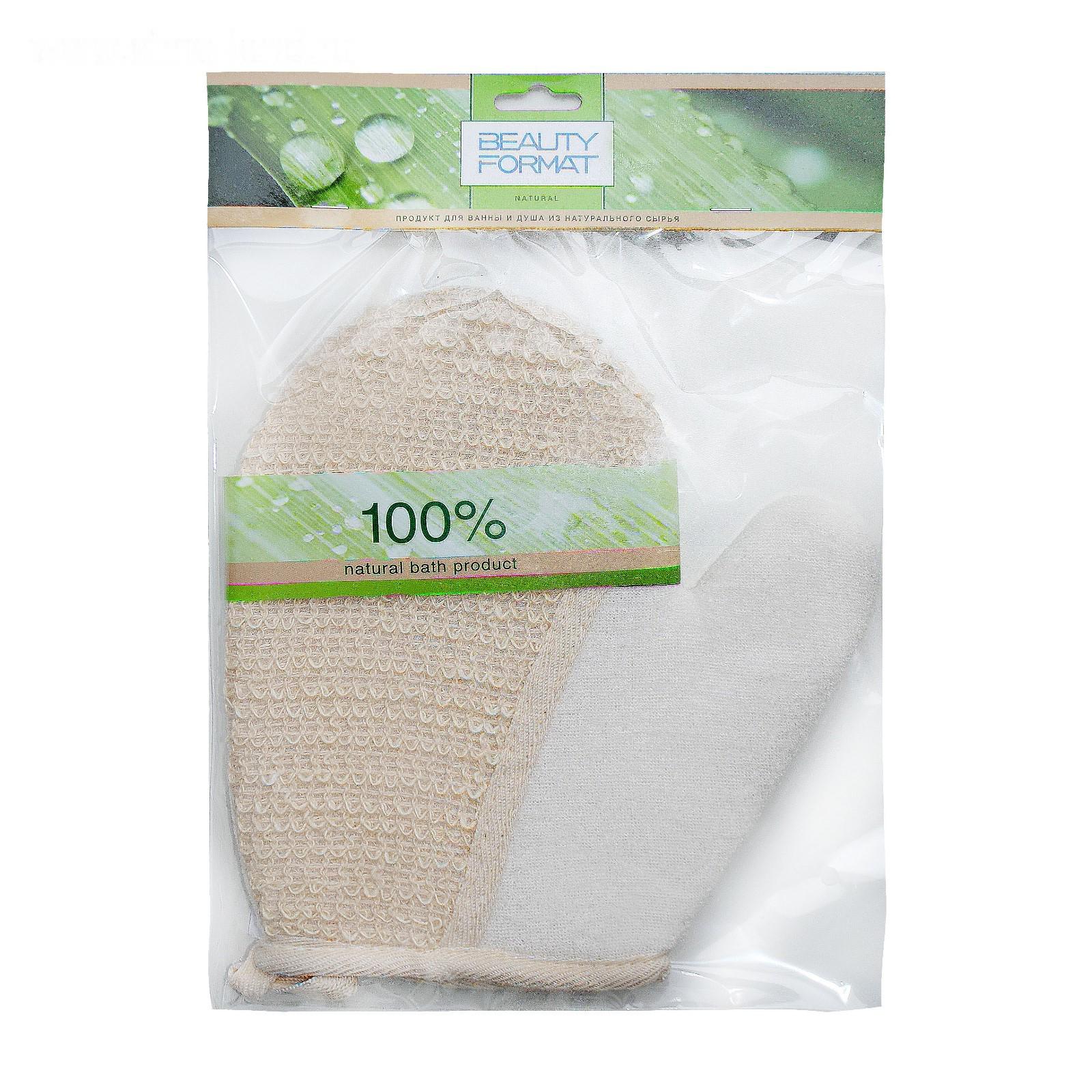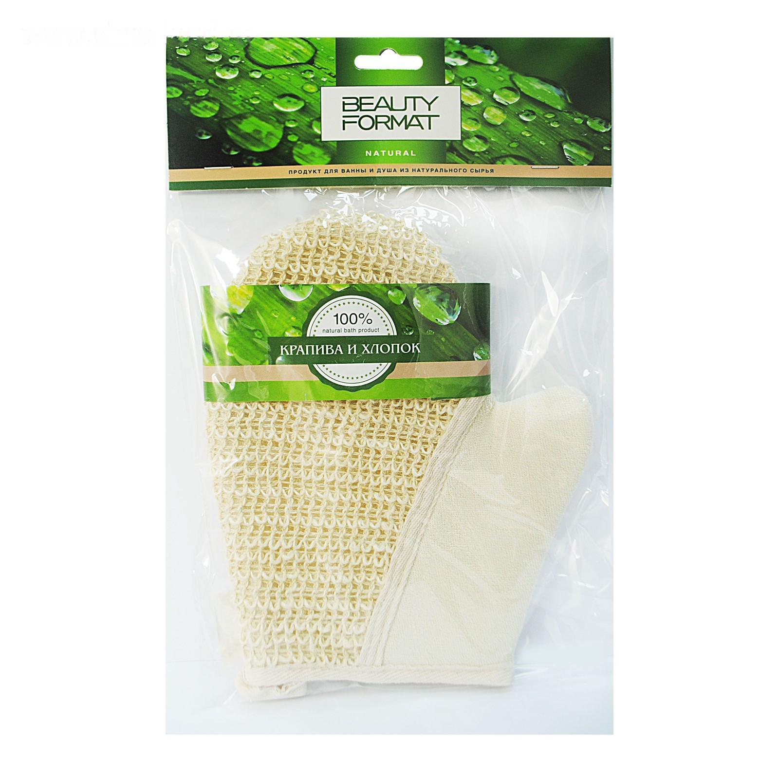 Мочалка Beauty Format натуральная рукавица, крапива + хлопок