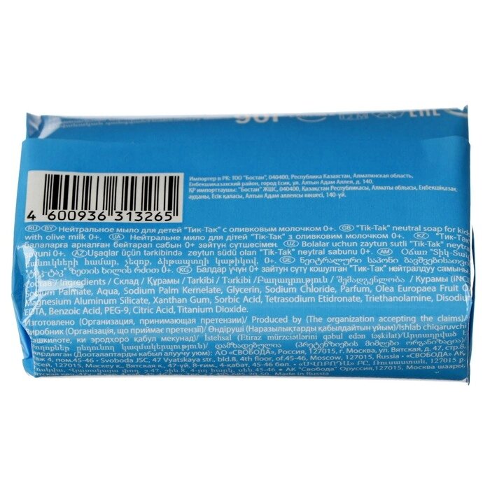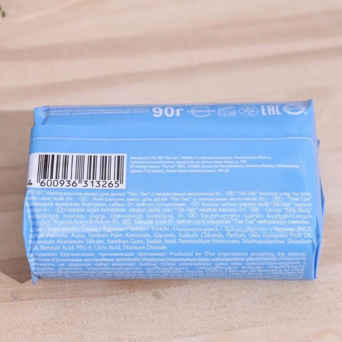 Нейтральное мыло для детей "Тик-так" с оливковым молочком, гипоаллергенное, 90 г