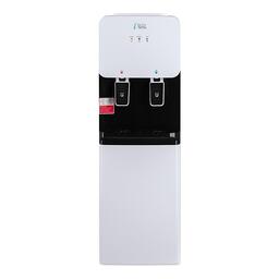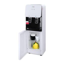 Компактный кулер для воды с функциями нагрева и охлаждения с небольшим шкафчиком в нижней части.