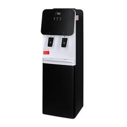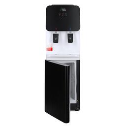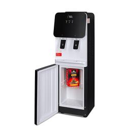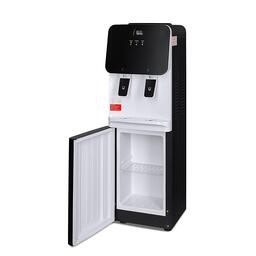Компактный кулер для воды с функциями нагрева и охлаждения, с небольшим шкафчиком в нижней части.