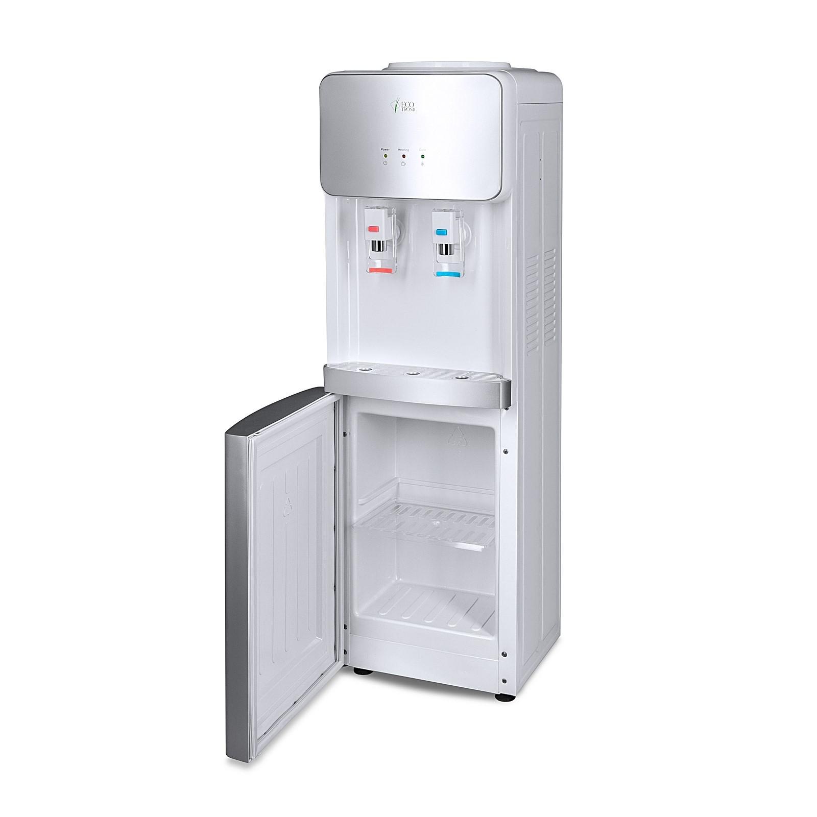 Напольный кулер с электронным охлаждением и шкафчиком в нижней части.