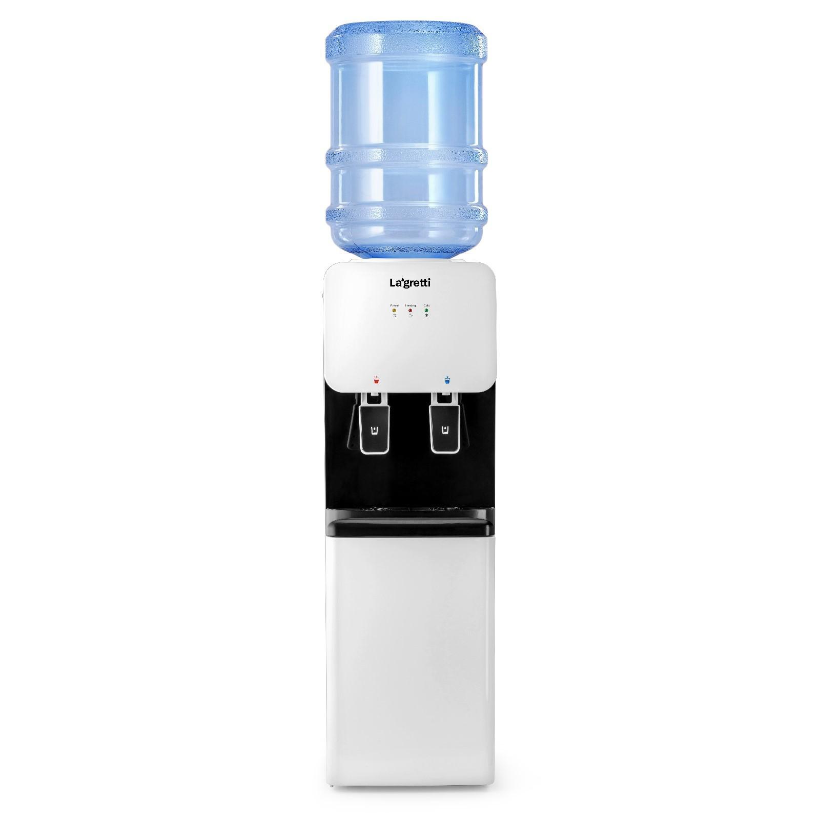 Напольный кулер для воды Lagretti Rome LCc white/black с верхней загрузкой бутыли, нагревом и компрессорным охлаждением.