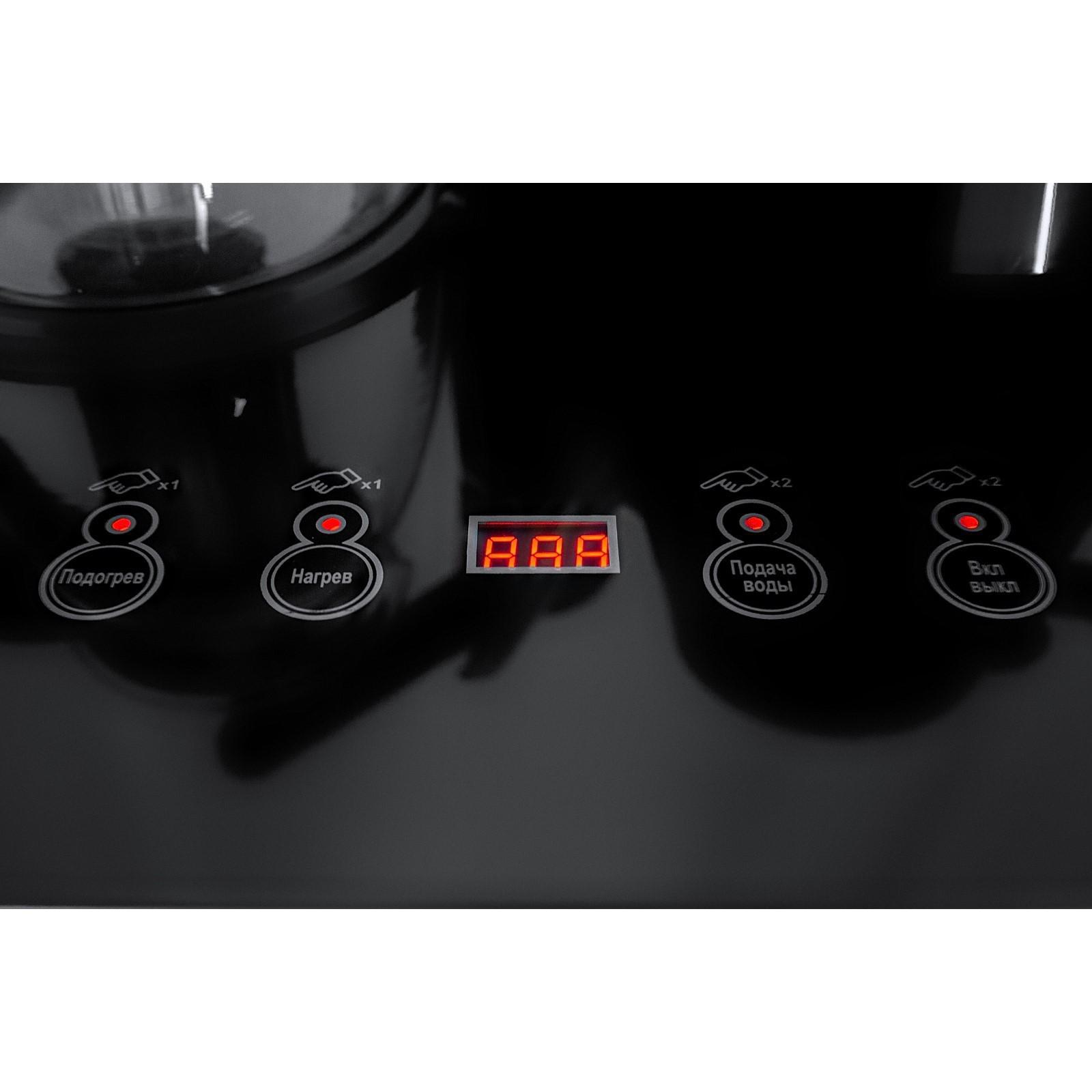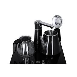На чайном столике расположен кран подачи воды и два чайника, для кипячения и заварочный. Заварочному чайнику можно включить режим постоянного подогрева (~ до 60°С). Чайник кипячения изотермический – меньше греется, лучше сохраняет температуру. Подача воды в него возможна без открытия крышки. Нагрев воды в чайнике включается вручную, либо автоматически в случае использования функции регулировки температуры воды.