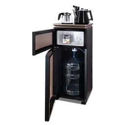 Тиабар Ecotronic TB9-LN gold — это напольный кулер с чайным столиком. Нижняя загрузка бутыли. Без охлаждения, только нагрев. Нагрев воды в чайнике до 100°С. Два чайника — для кипячения (изотермический) и заварочный. Шкафчик для хранения.