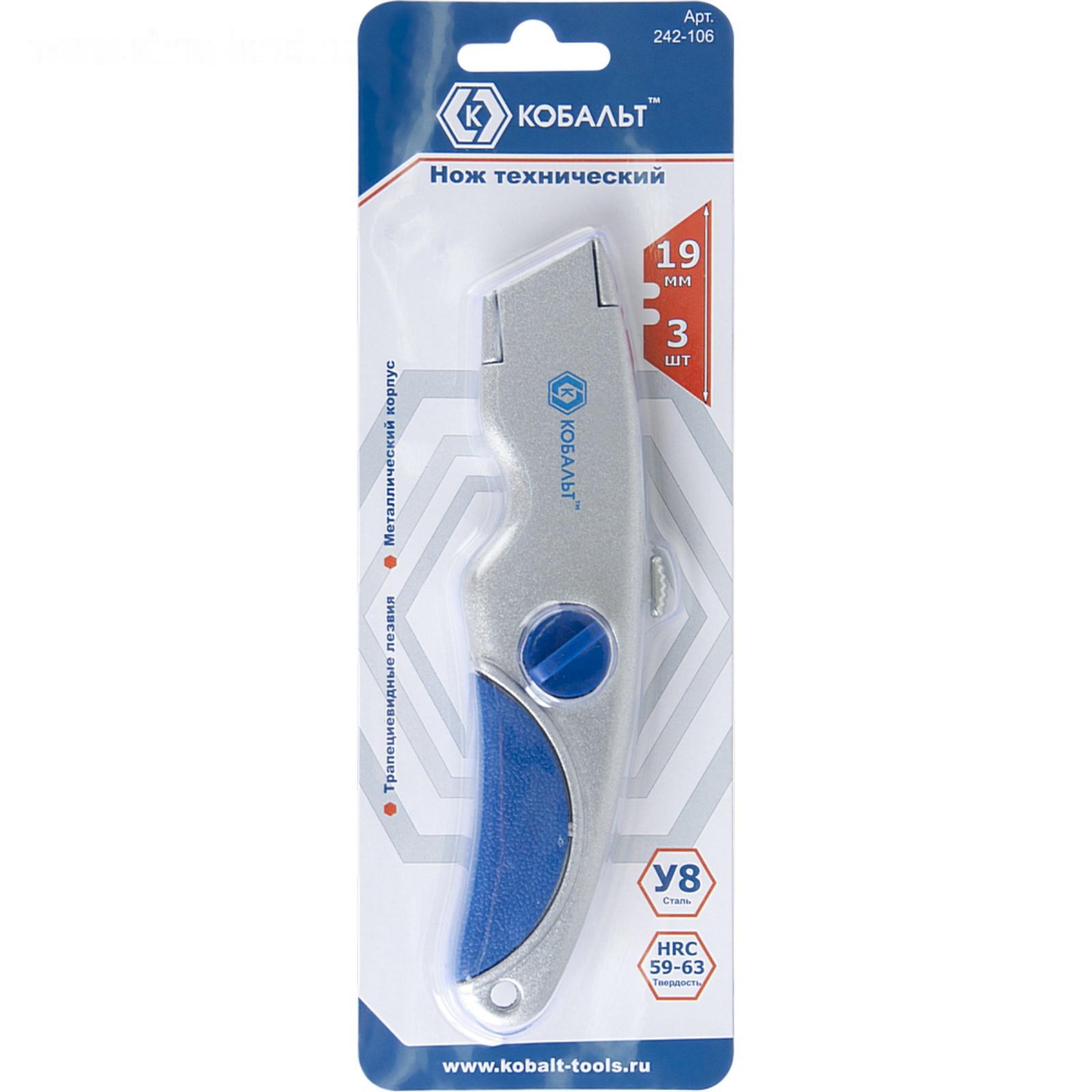 Нож универсальный "КОБАЛЬТ", корпус металл, усиленный, 3 зап. лезвия, трапеция 19 мм