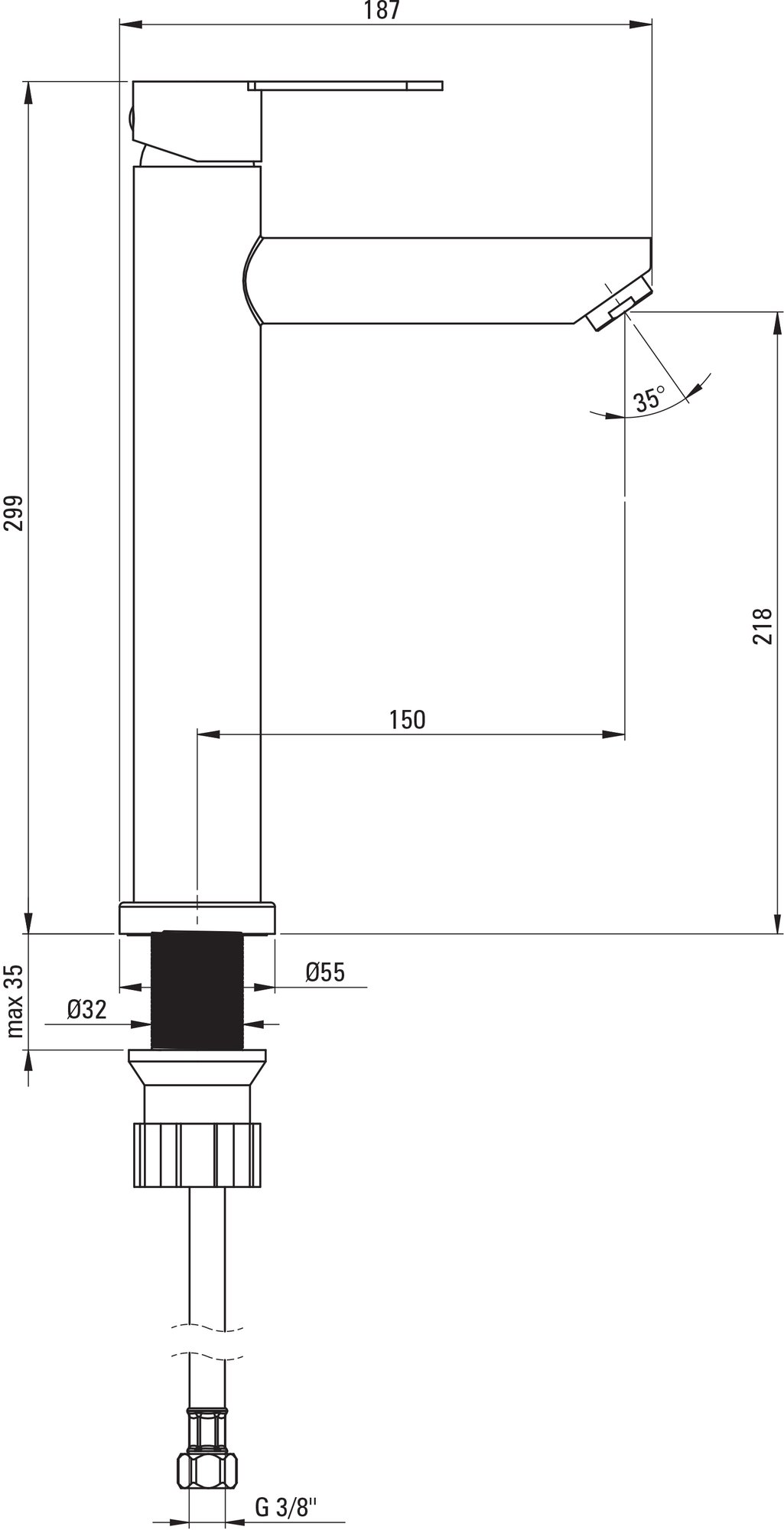 Высота излива - 218 мм