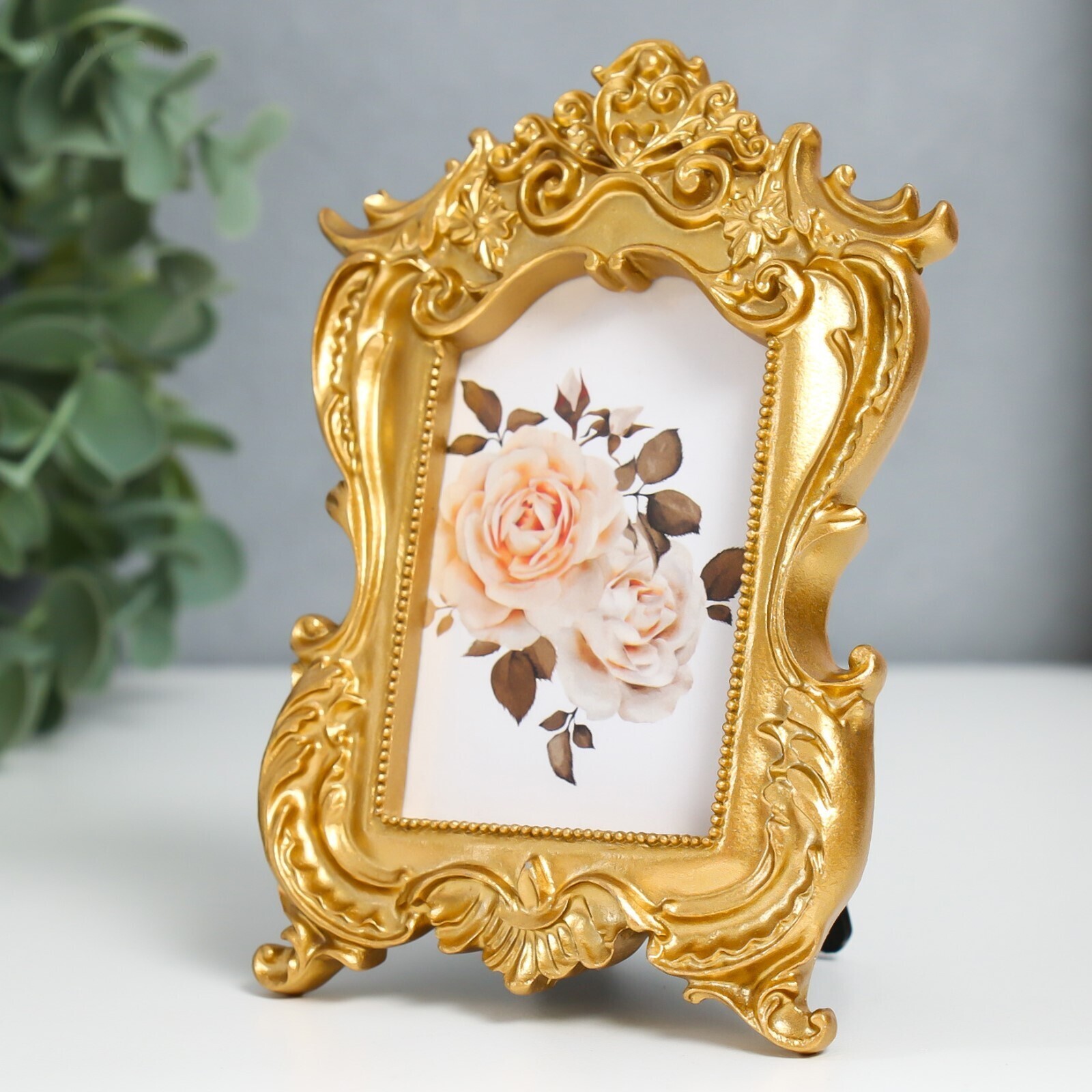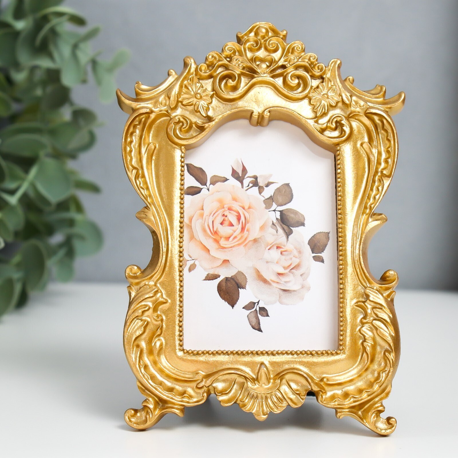 Фоторамка полистоун на 1 фото 7х5 см "Цветочные фантазии" золото