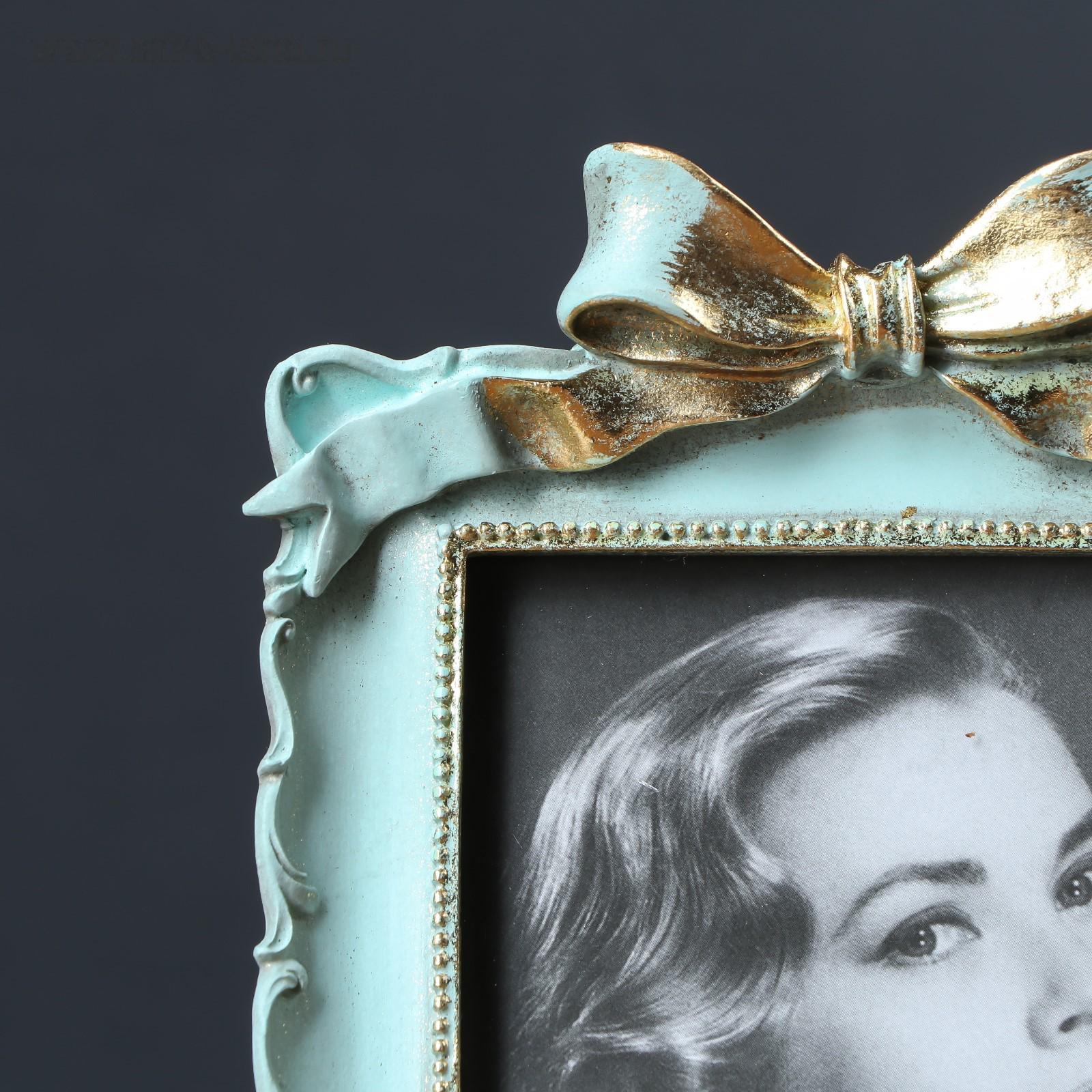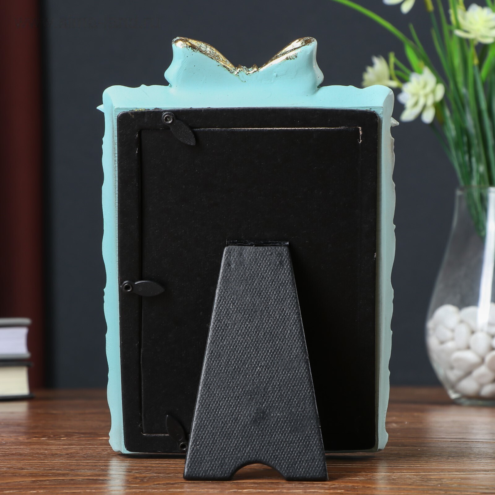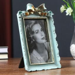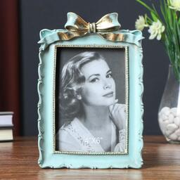 Фоторамка полистоун 10х15 см "Золотой бант" голубая 20х13,5х3 см