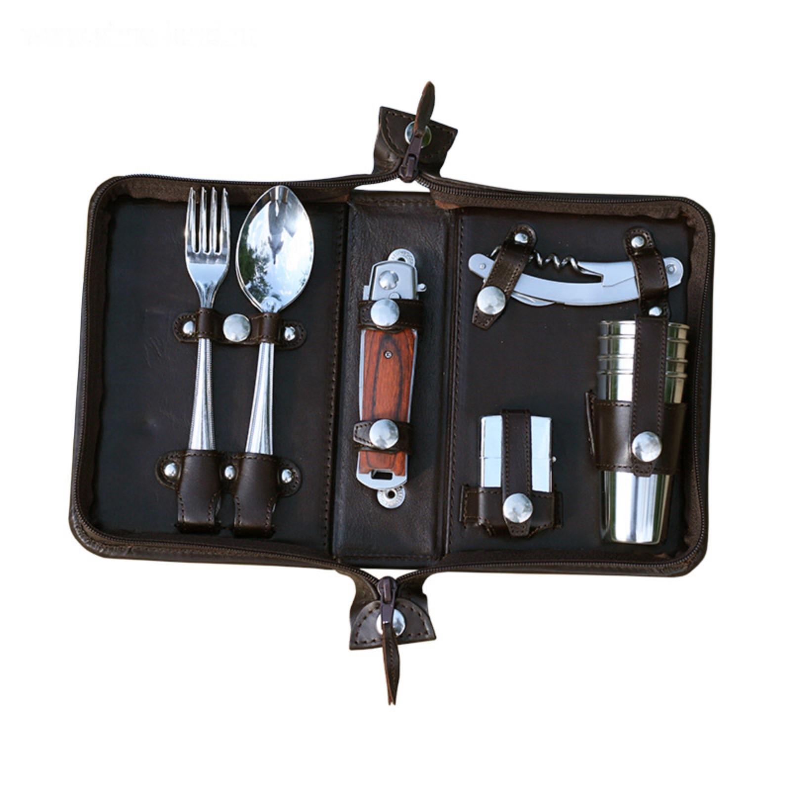 Набор дорожный в сумке из натуральной кожи (на 4 персоны)