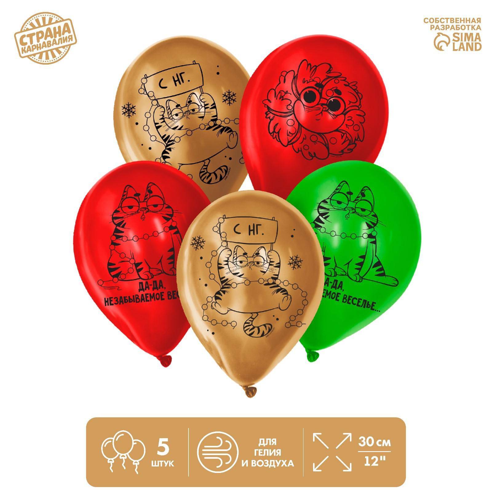 Шар воздушный 12" «С НГ», золото, зелёный, красный, 5 шт.