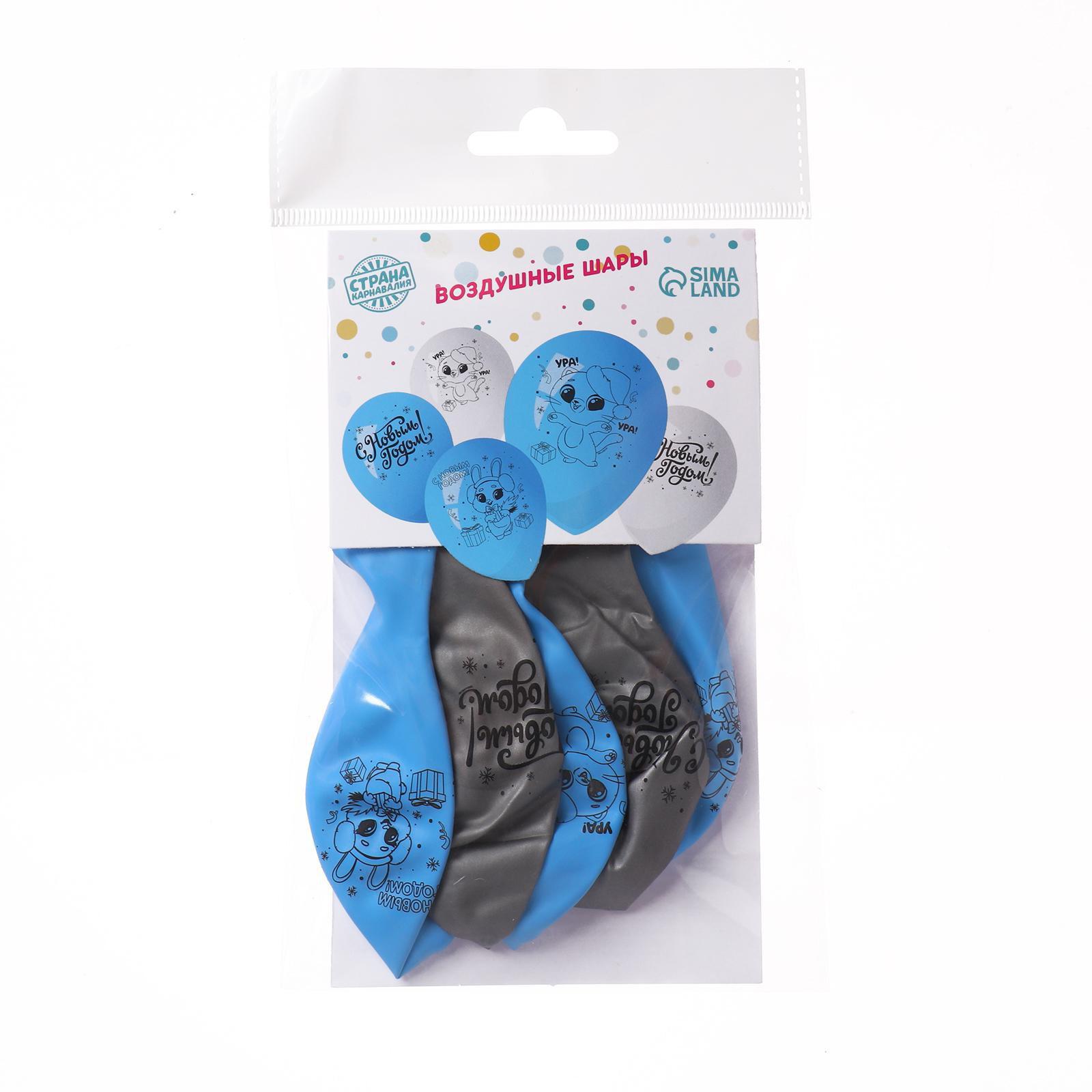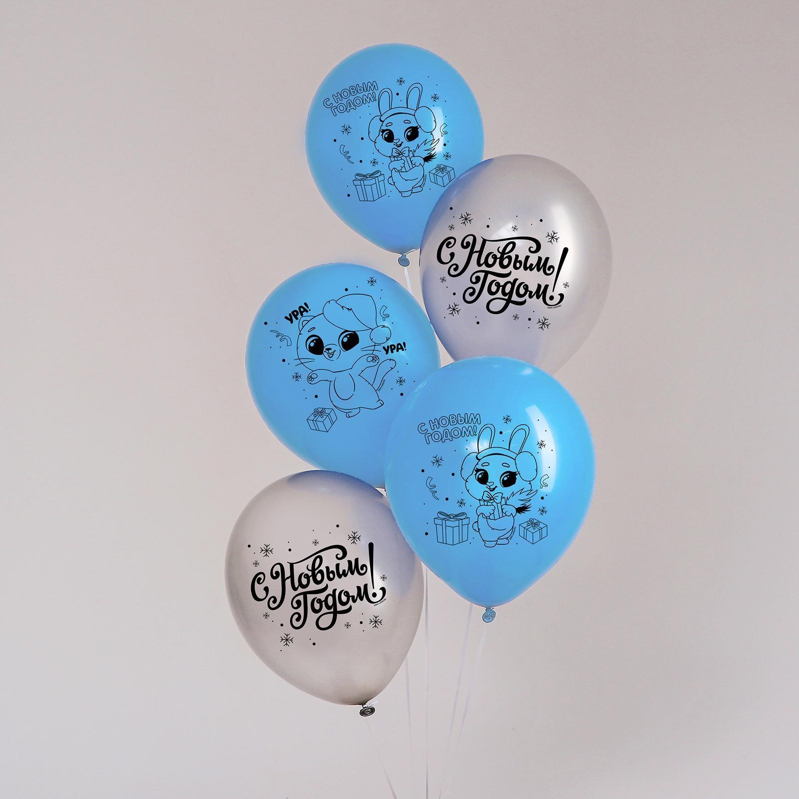 Шар латексный 12" "С Новым годом.", голубой, серебро набор 5 шт.