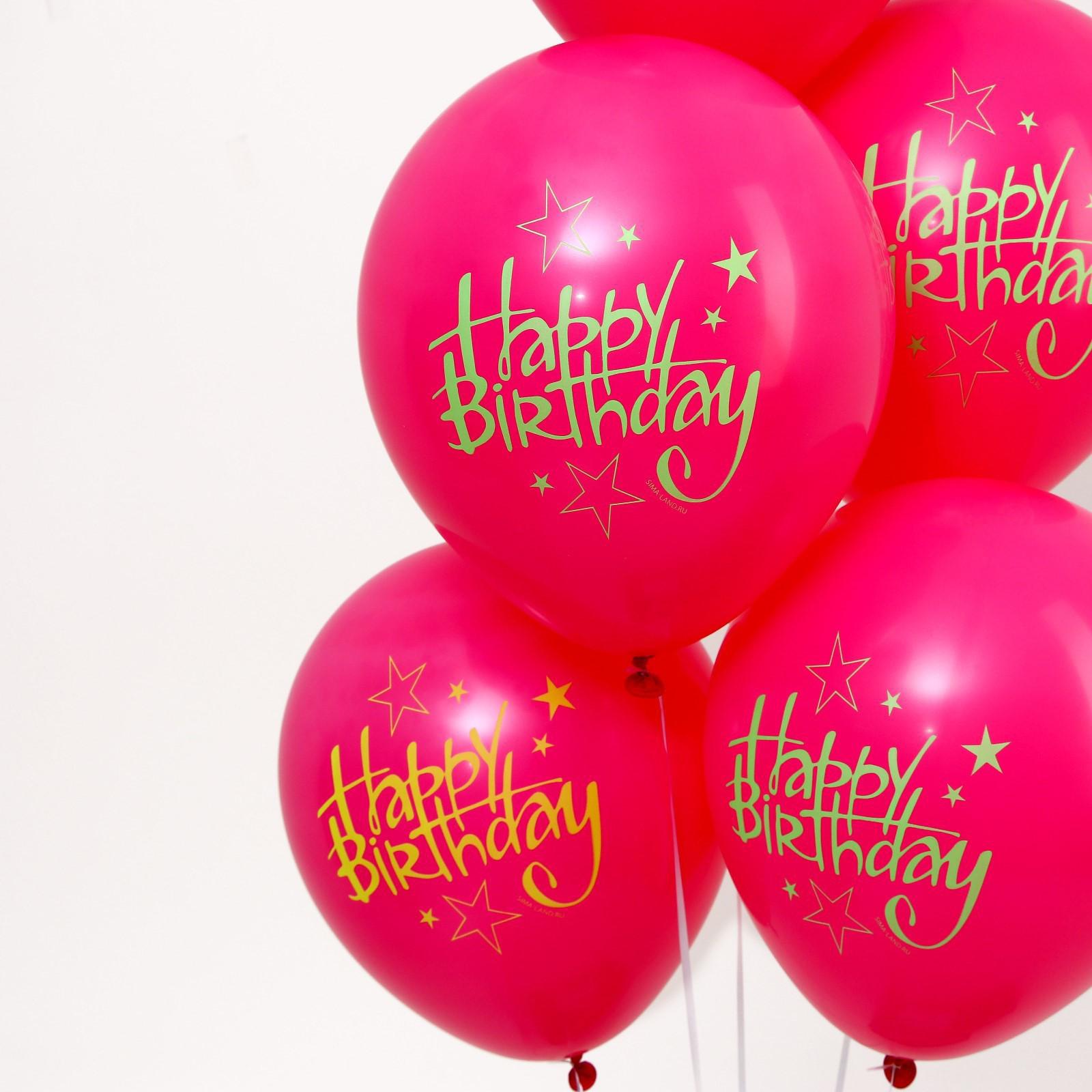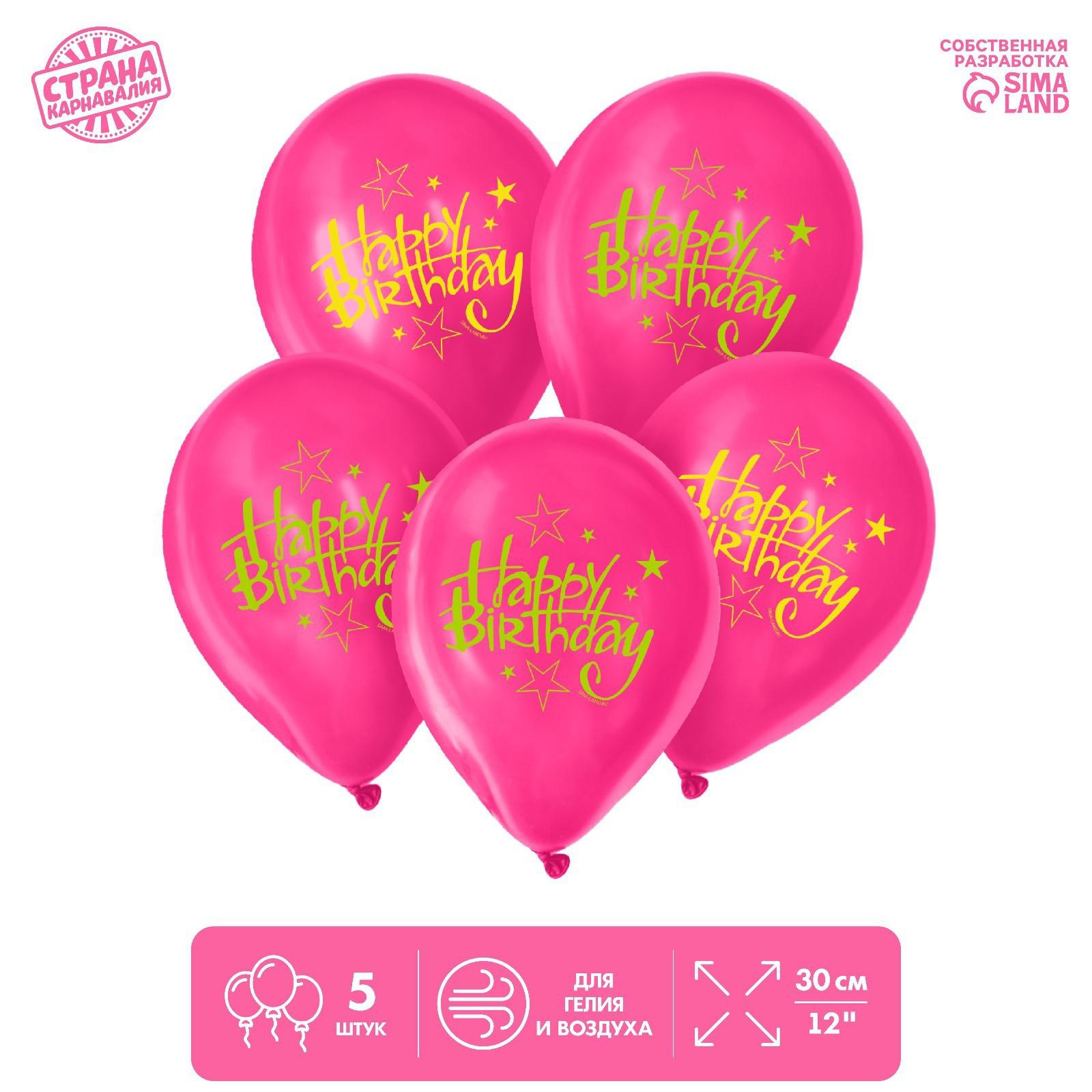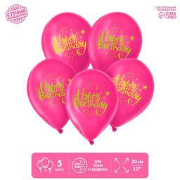Шар латексный 12" Happy Birthday, набор 5 шт.