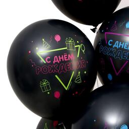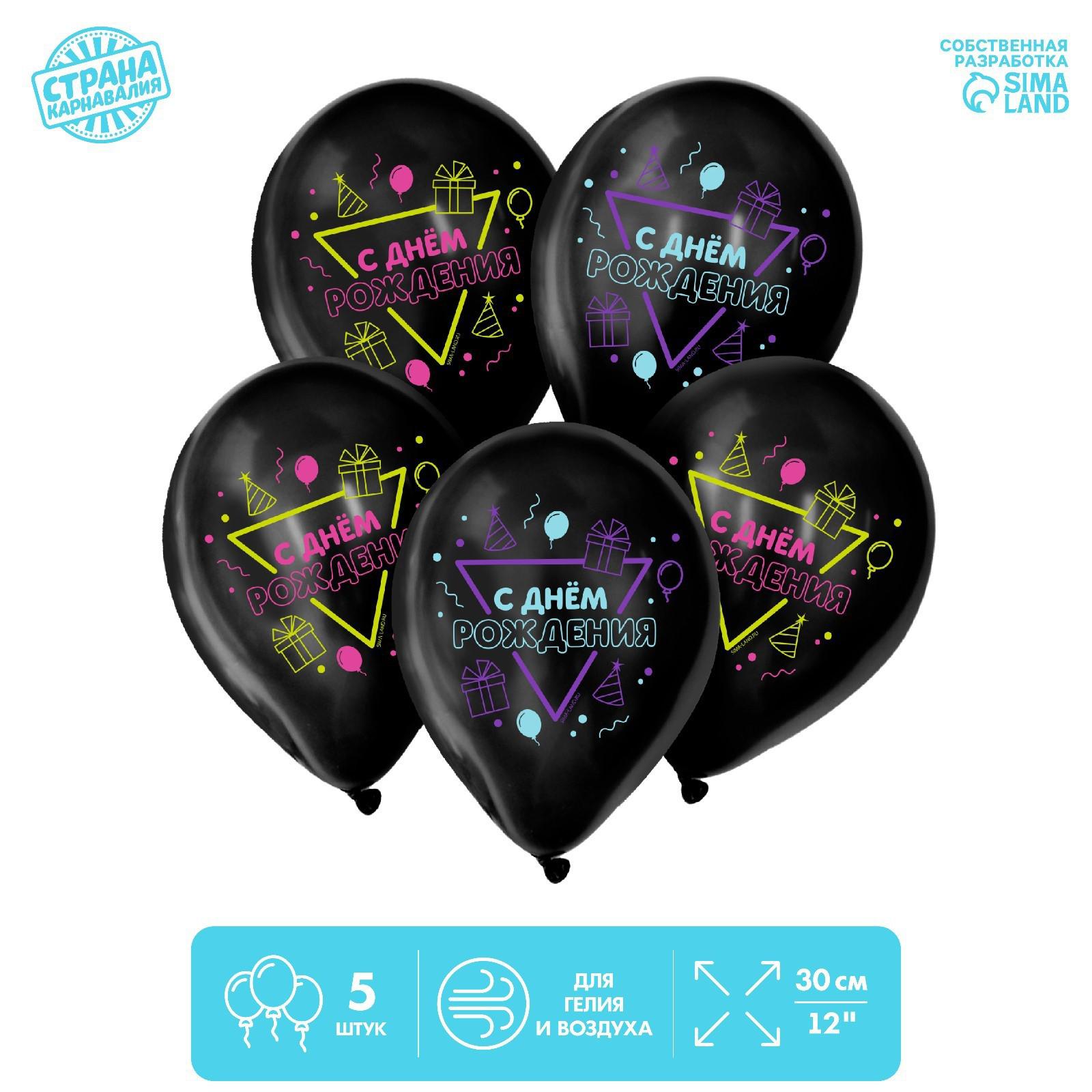 Шар латексный 12" «С днём рождения», набор 5 шт.