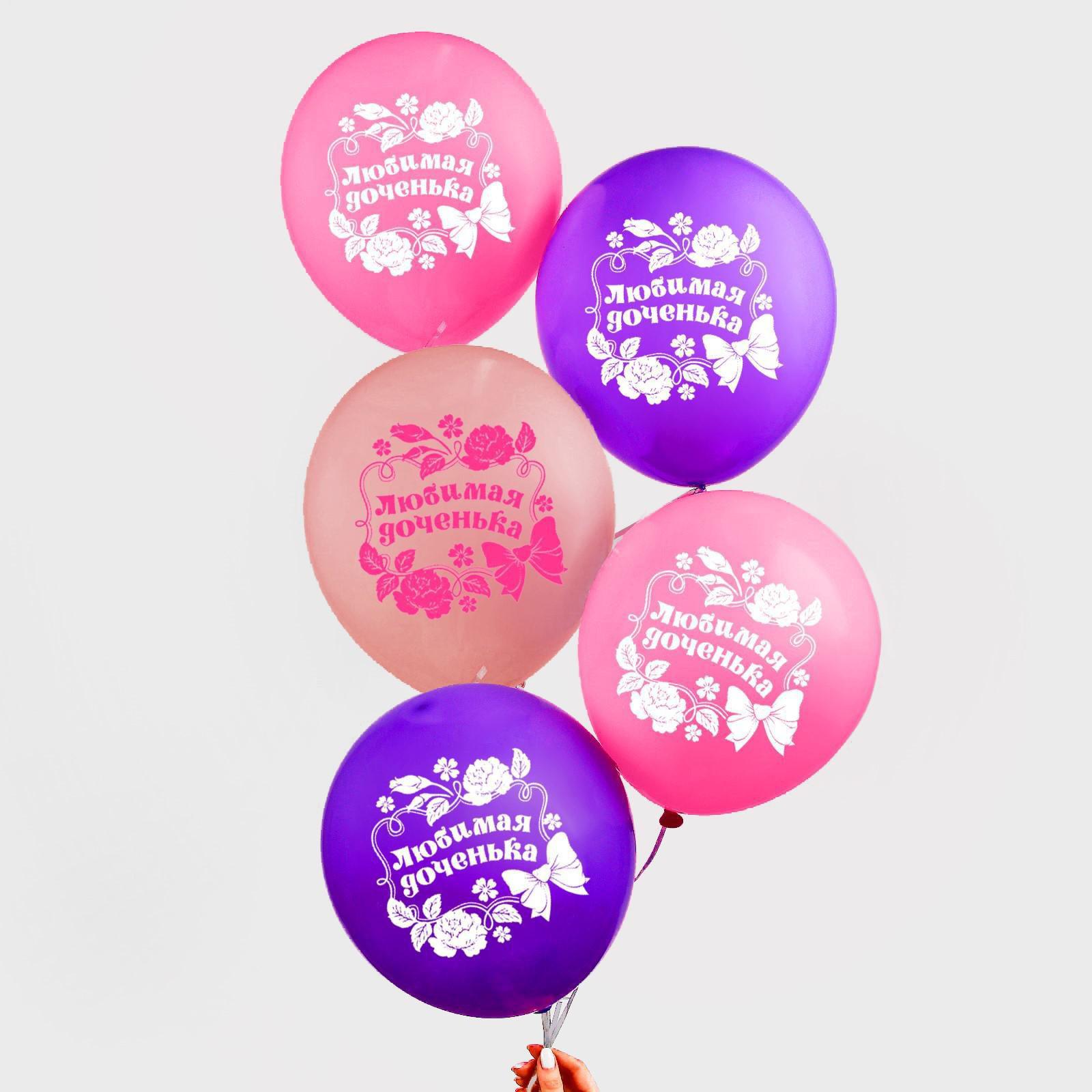 Шар латексный 12" "Любимой доченьке" пастель, 5 шт.