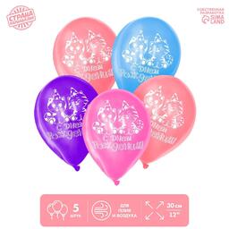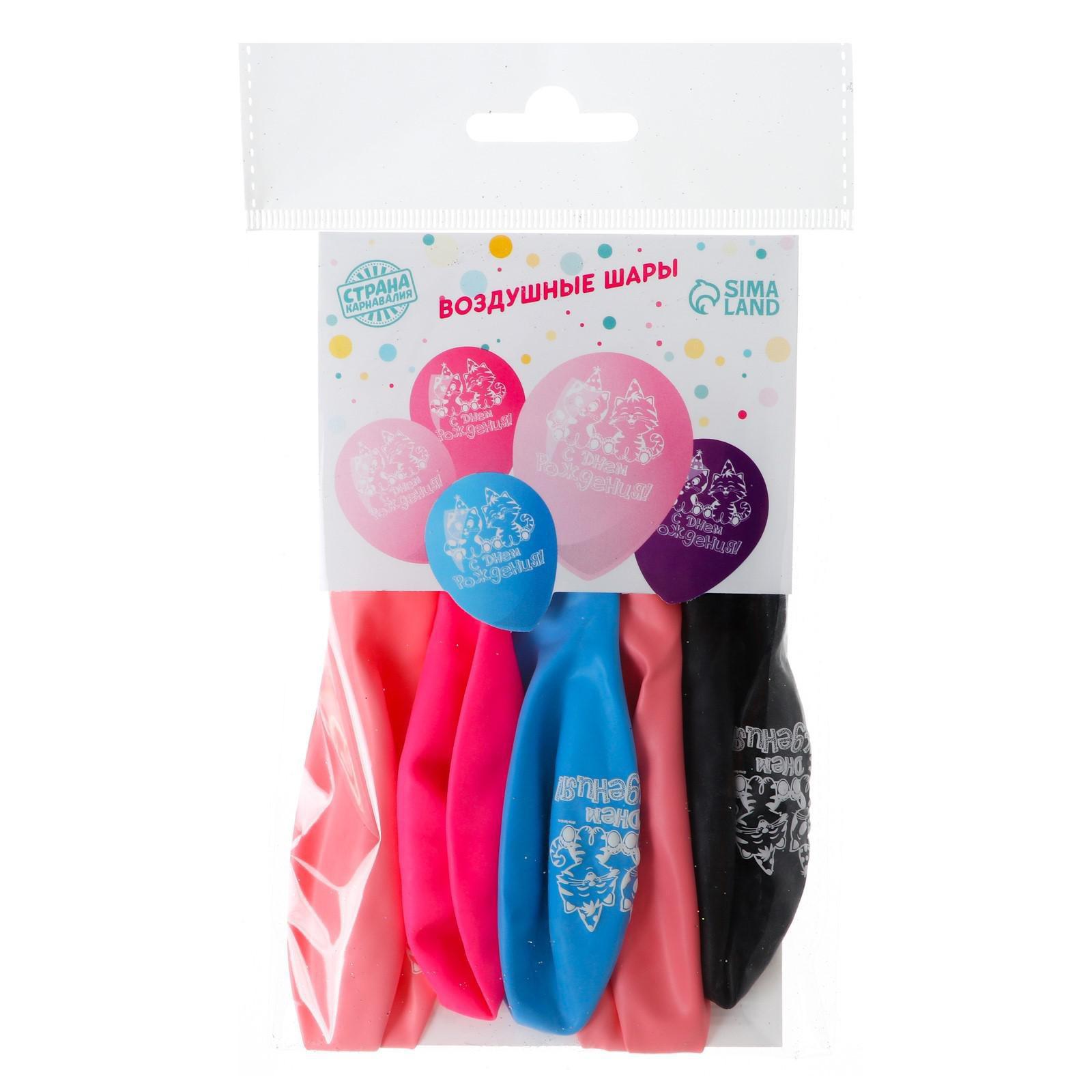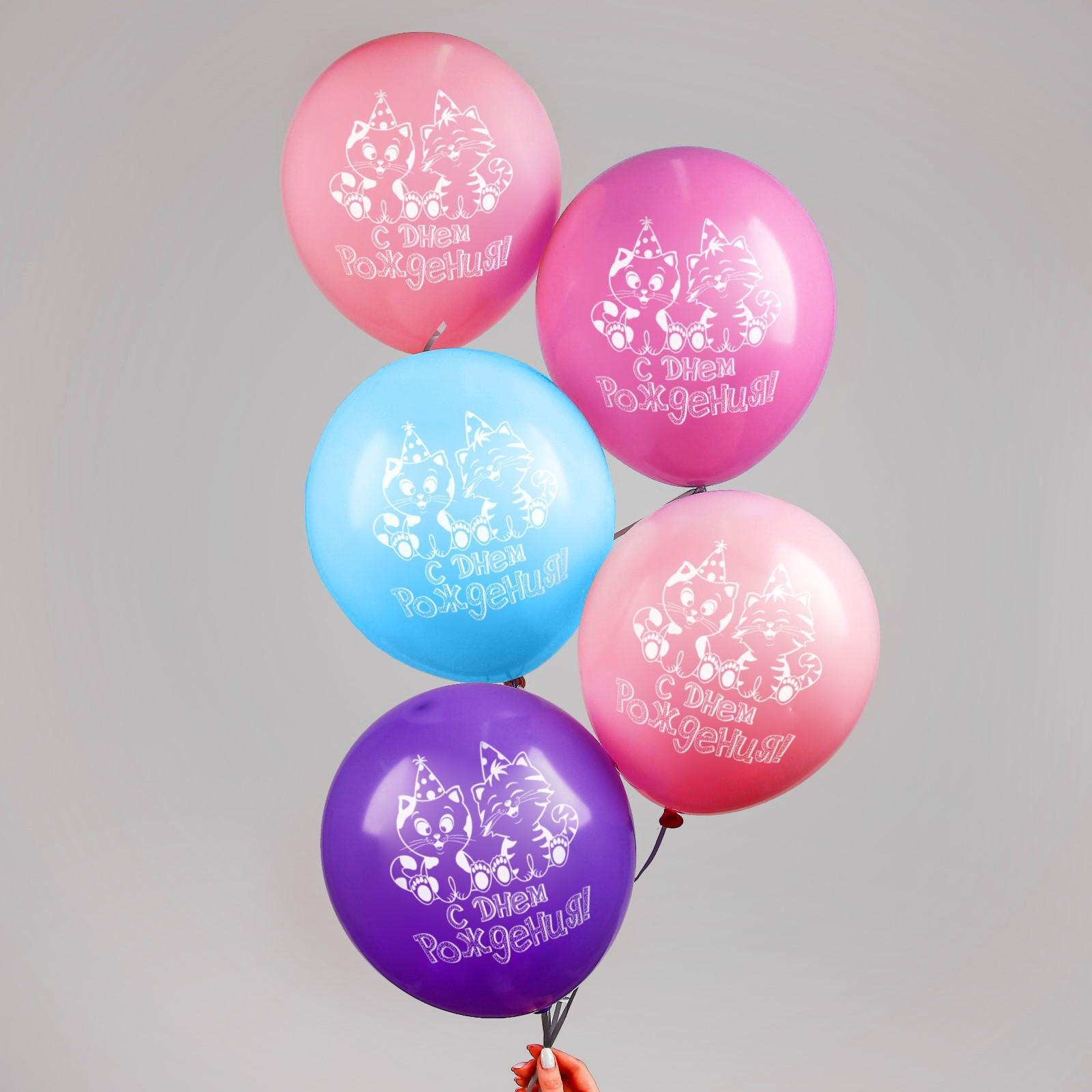 Шар воздушный 12" "С днём рождения", коты, набор 5 шт., МИКС