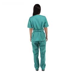Яркая и приятная по цвету униформа — залог хорошего настроения медицинских работников, а значит, скорейшего выздоровления пациентов. Костюм прямого покроя не сковывает движений и красиво подчёркивает фигуру. Спереди есть два вместительных кармана для нужных предметов. Сзади предусмотрен поясок, который можно регулировать по размеру талии.