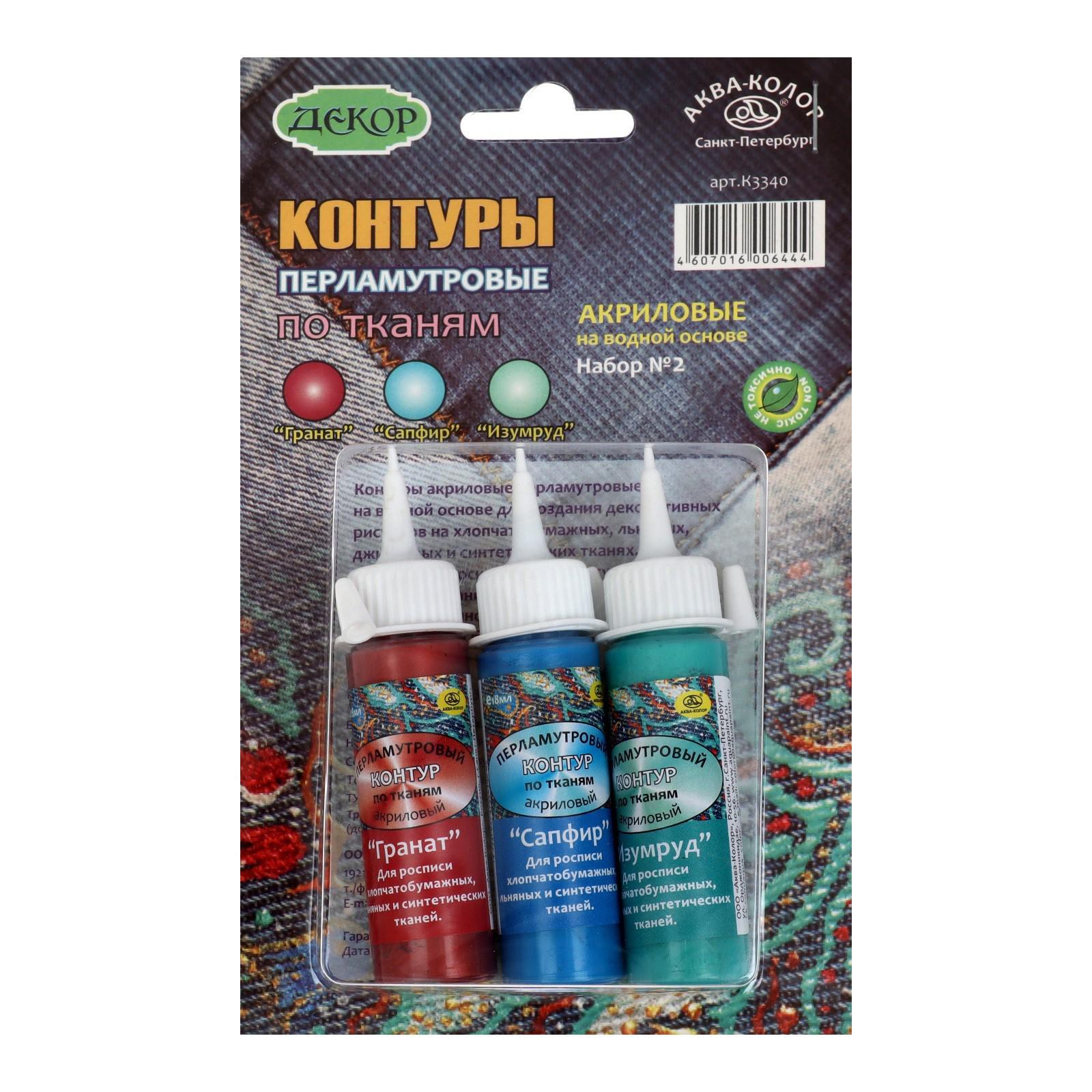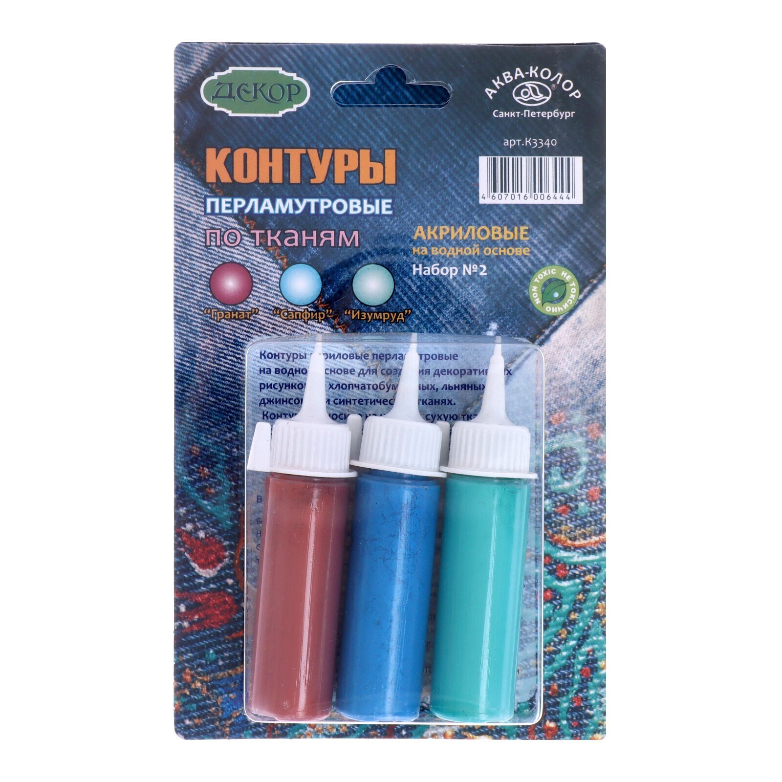 Набор контуров по ткани 3 цвета х 18 мл, "Аква-Колор", № 2, перламутровый, акрил на водной основе, морозостойкий