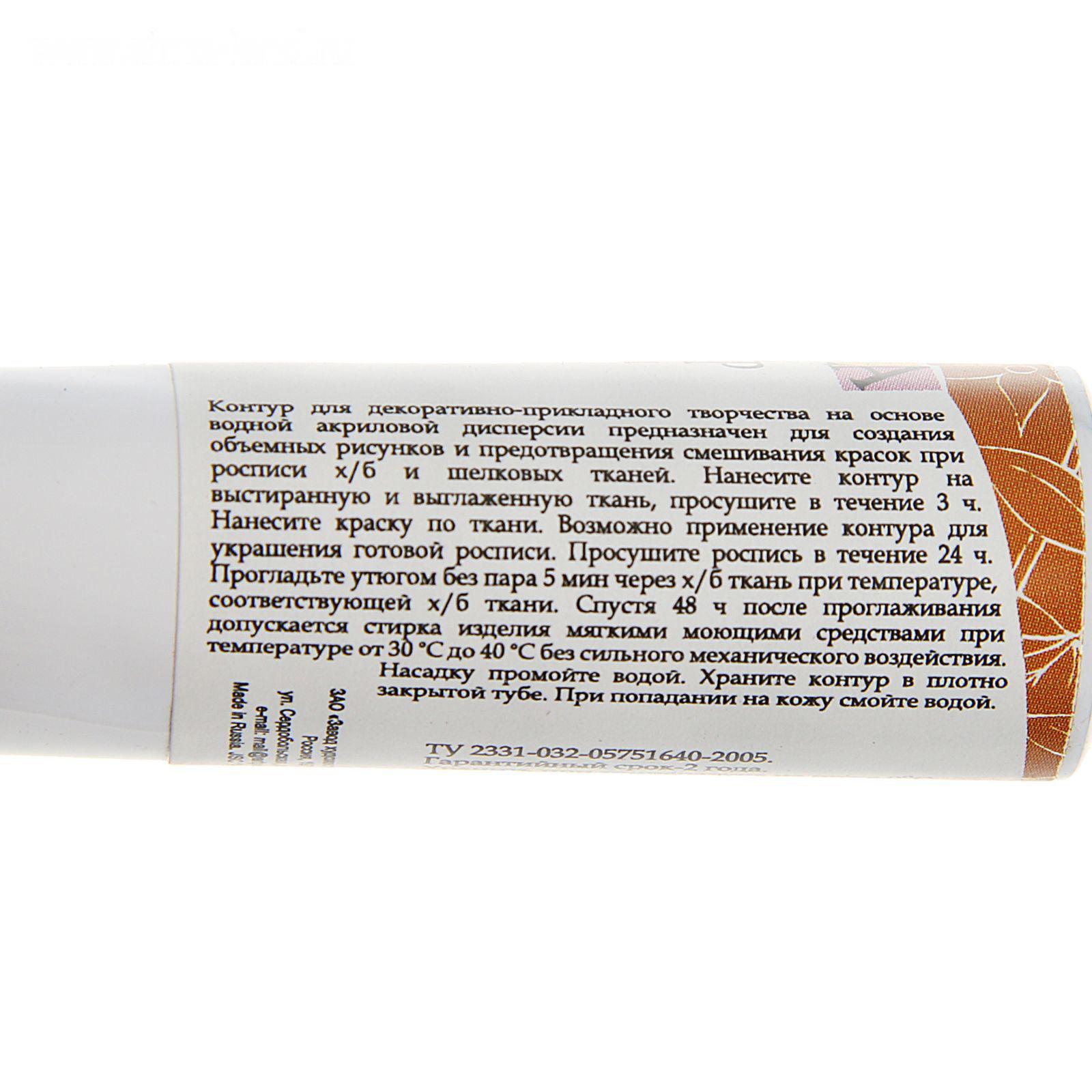 Контуры для декоративно-прикладного творчества на основе водной акриловой дисперсии предназначены для создания объемных рисунков и предотвращения смешивания красок при росписи х/б и шелковых тканей.