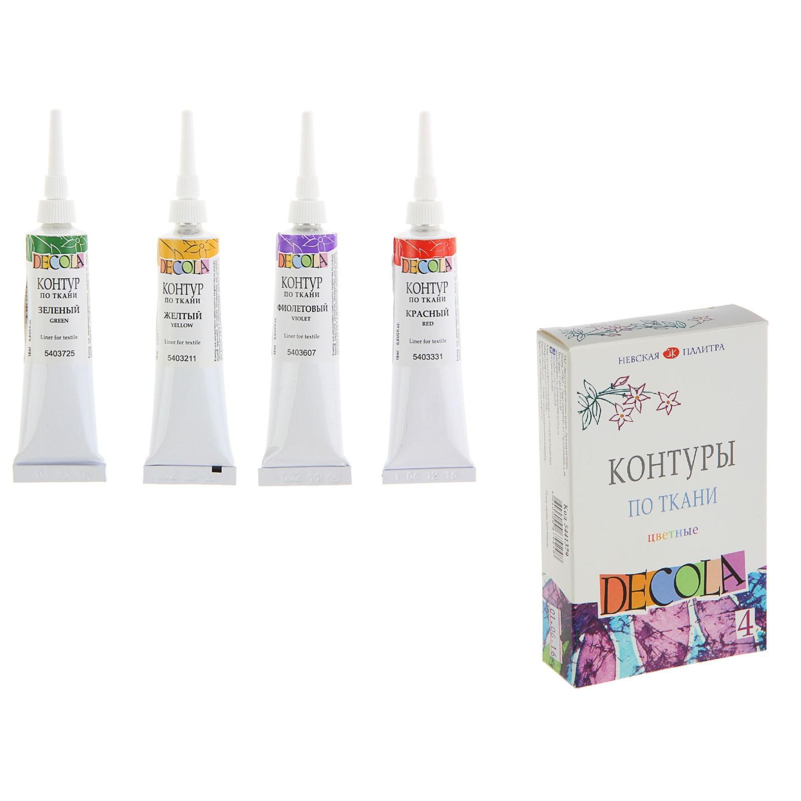 Набор контуров по ткани 4 цвета х 18 мл, ЗХК Decola, жёлтый, фиолетовый, красный, зелёный (544137)