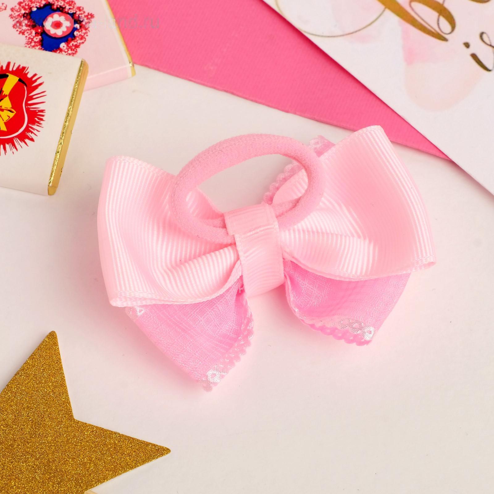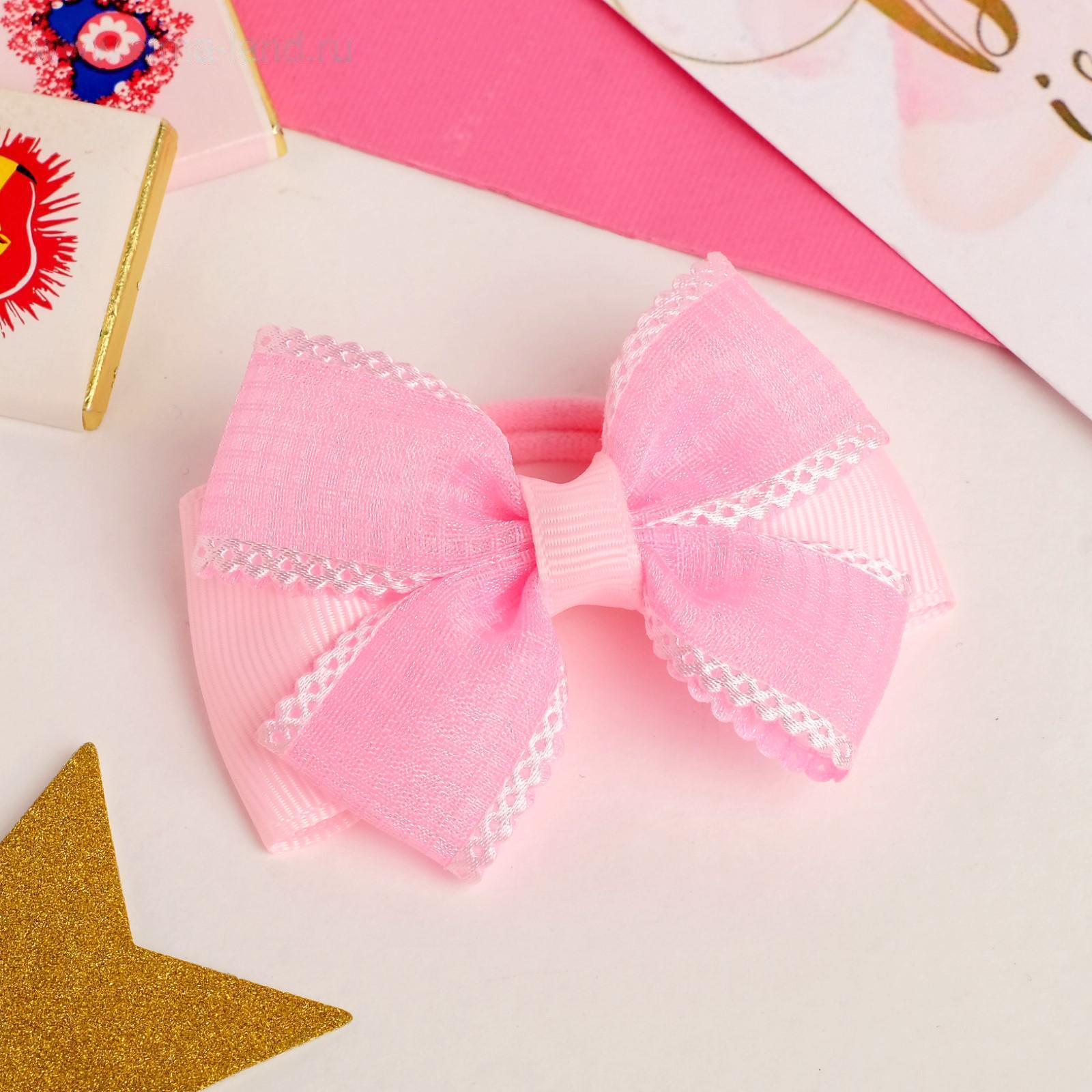 Резинка для волос бант "Маруся" клеточка, 8,5 см, розовый