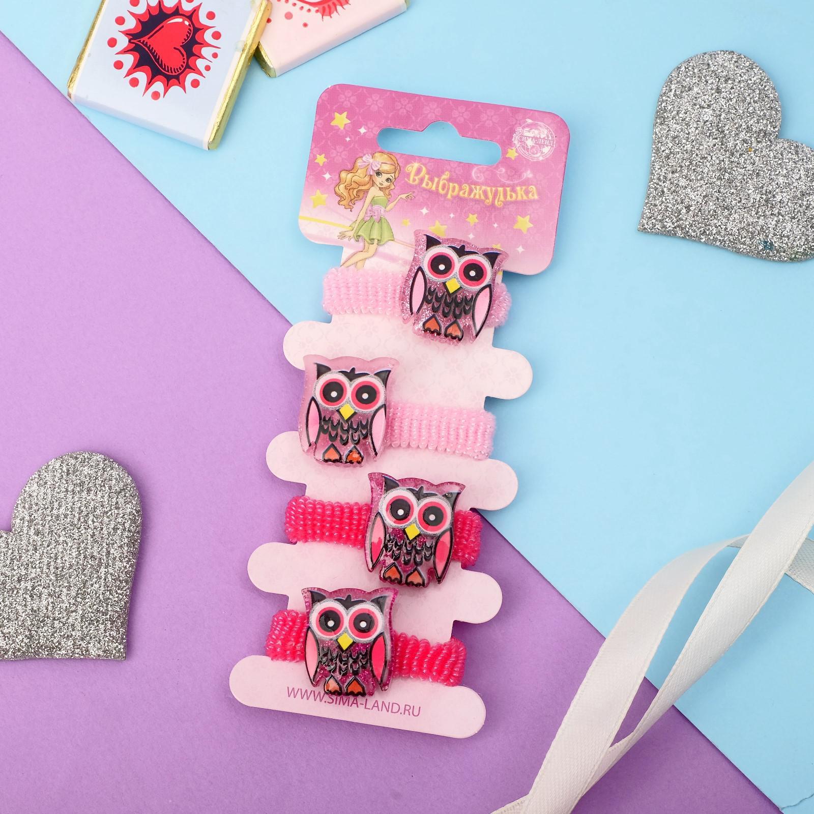 Резинка для волос "Совушки блеск" (набор 4 шт) 3,5 см, розовый